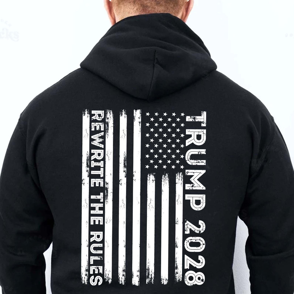 Show your unwavering support for President Trump with this bold and patriotic "Trump 2028" shirt. Featuring the powerful slogan "Rewrite the Rules," this tee is perfect for dedicated Trump supporters, MAGA enthusiasts, and those who back the Republican Party’s values. The back of the shirt proudly displays the iconic USA flag, symbolizing American pride and the spirit of the GOP. Made from comfortable, high-quality fabric, this shirt is designed to make a statement at rallies, protests, political events, or any occasion where you proudly support Trump. Wear it with pride and stand for freedom, patriotism, and the conservative values that Trump represents. A must-have piece of apparel for Trump supporters, MAGA fans, and those ready to see Trump lead America to victory in 2028!