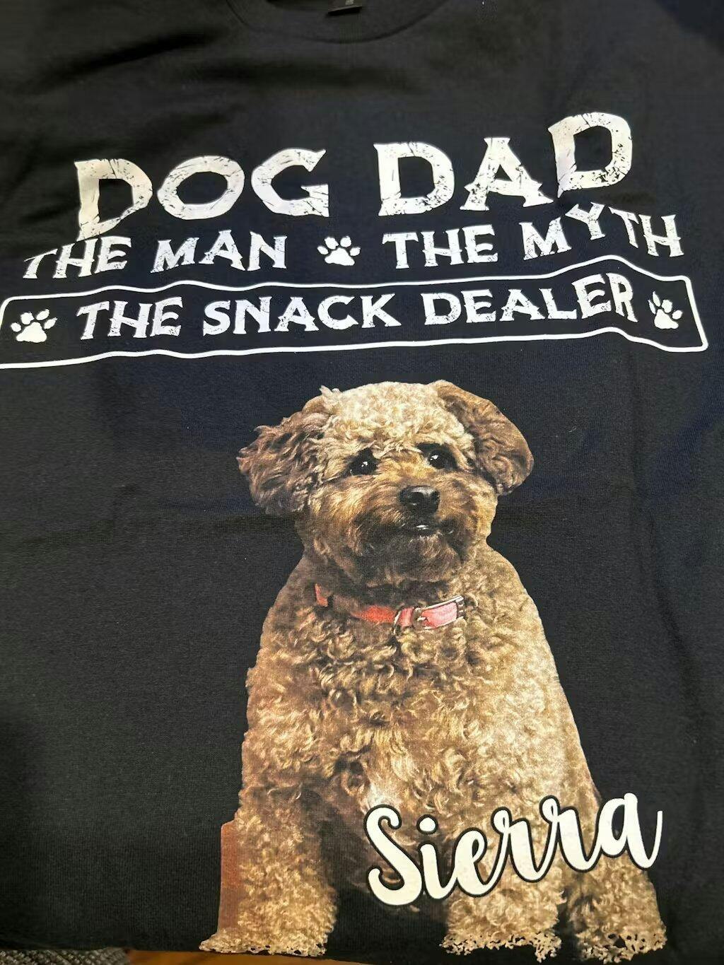 The personalized T-shirt I ordered was made with a high quality tee shirt. The photo of our pet was accurately reproduced on the tee. I am very happy with my purchase. I’m sure my husband will love it as his Father’s Day gift.
