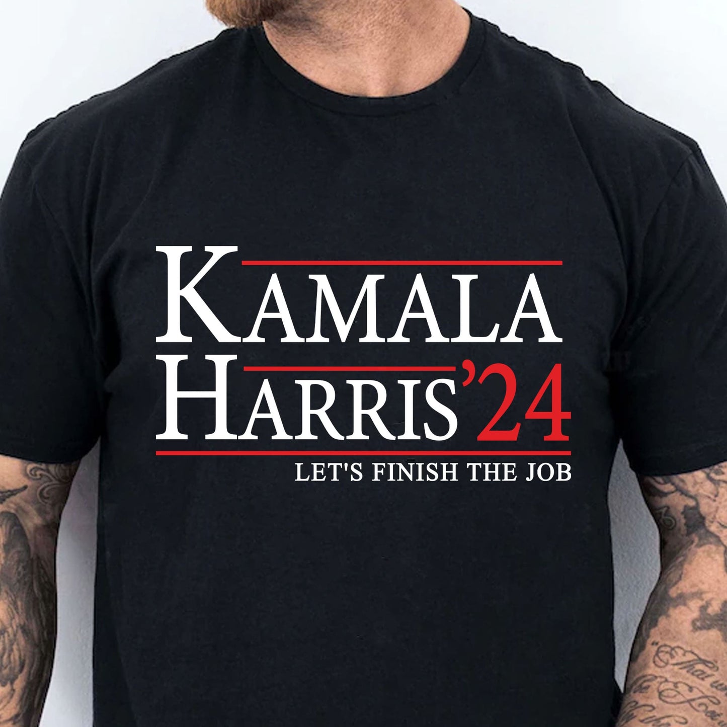 alt="Kamala Harris Let's Finish The Job Shirt | Kamala Harris 2024 Shirt | Democrat Shirt Dark T1437 - KH2"