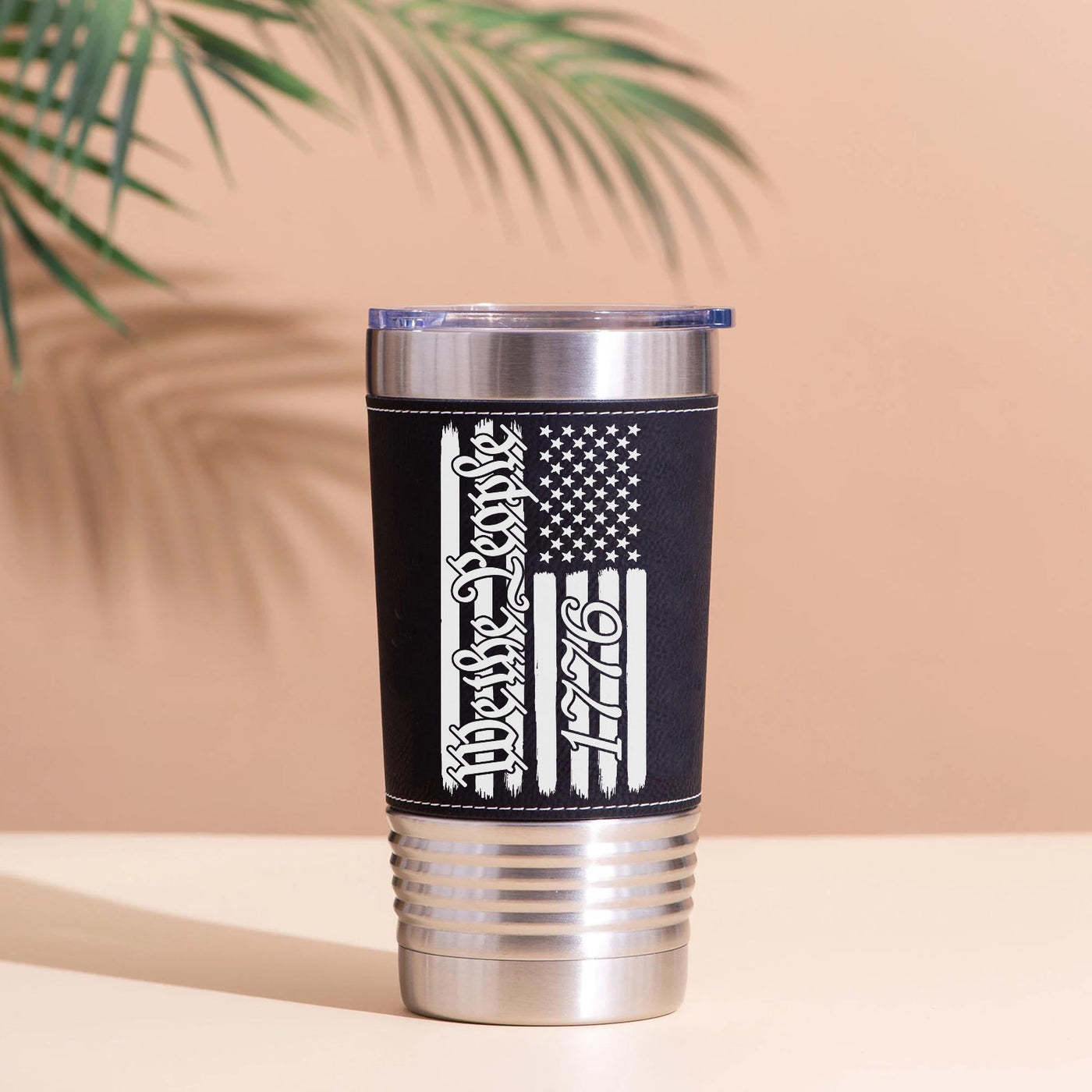 250 Years We the People Leather Tumbler, USA Flag America 1776–2026 Leather Tumbler
