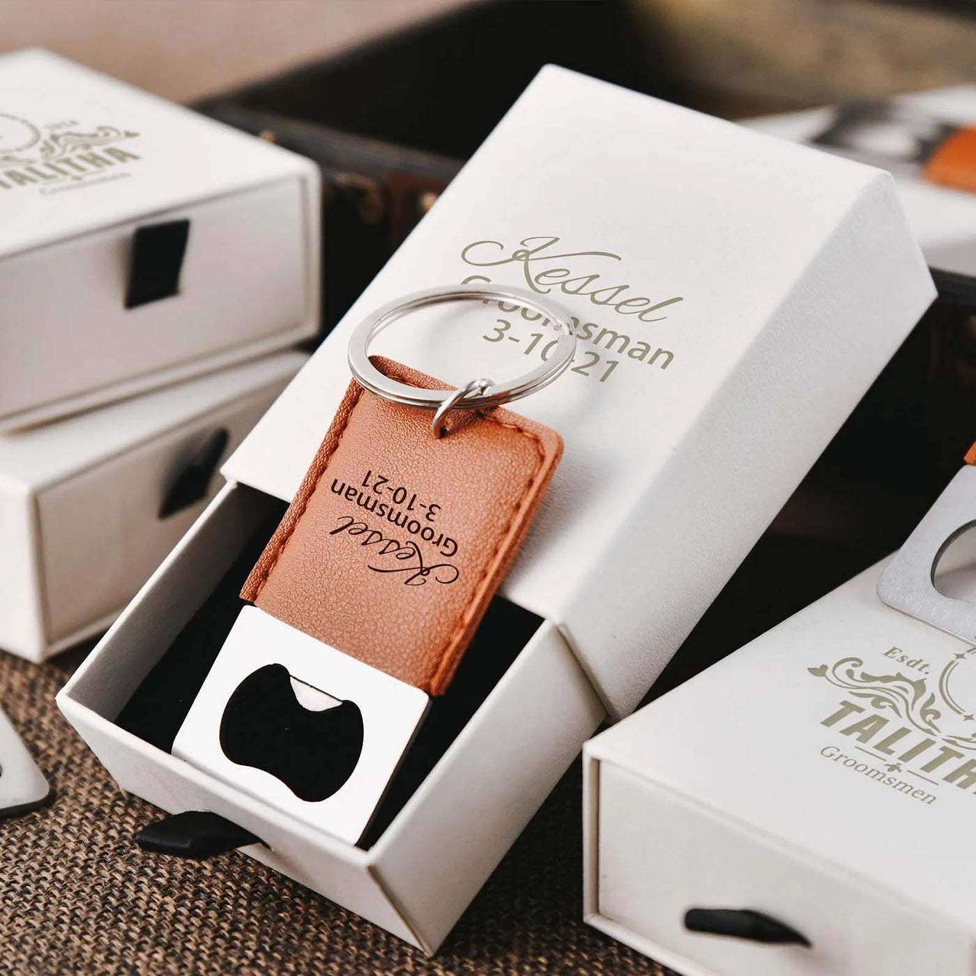 Elevate your gifting game with our Personalized Bottle Opener Keychain, crafted from premium leather for a touch of sophistication. This custom leather keychain is the perfect gift for him, making it an ideal choice for groomsmen gifts, birthdays, or special occasions. Personalize it with names, initials, or meaningful messages to create a unique keepsake that combines style and functionality. Whether for a wedding, anniversary, or just to show appreciation, this keychain is a thoughtful and practical accessory that he’ll cherish for years to come. Order now to give a gift that truly stands out!