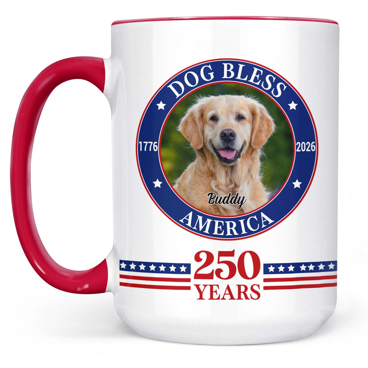 Personalized Dog Photo Bless America Mug | 250 Years 1776–2026 Coffee Mug | Patriotic White Mug Accent Mug 683624