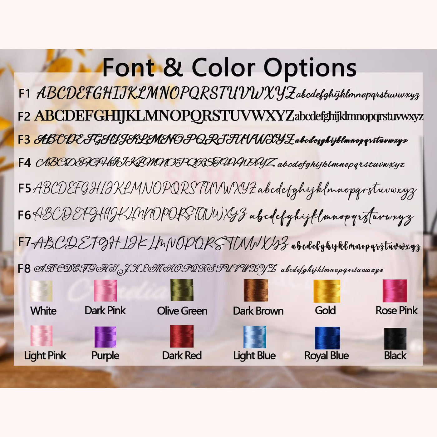 Elevate your beauty essentials with our Personalized Embroidered Makeup Bag. This custom floral cosmetic bag is not only stylish but also functional, perfect for organizing your makeup and toiletries. Made from high-quality materials, it features a beautiful floral design and can be personalized with your name or initials for a unique touch. Ideal as a travel makeup pouch, it easily fits in your luggage while keeping your cosmetics secure and accessible. Whether for yourself or as a thoughtful gift for friends and family, this versatile bag combines elegance and practicality. Order yours today and make your beauty routine more personal!