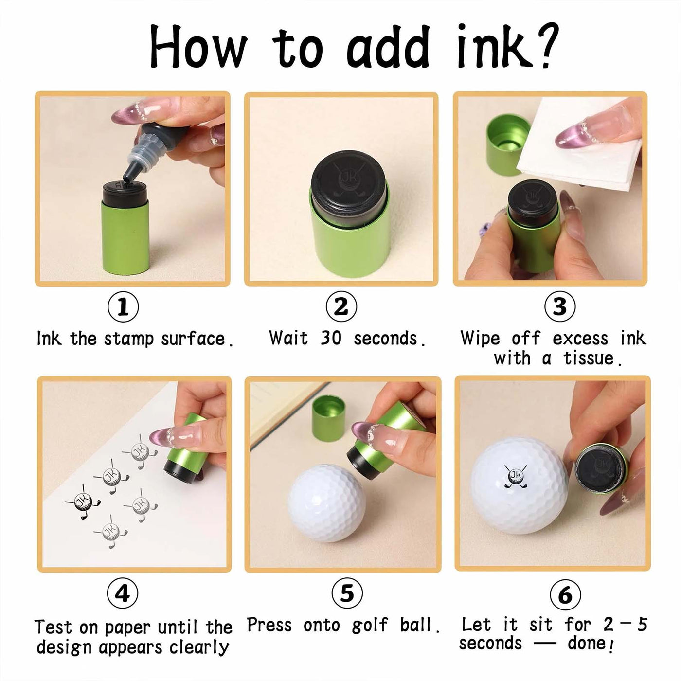 Elevate your golf game with the Custom Golf Ball Stamp, a durable and personalized self-inking stamper designed for golf enthusiasts. Crafted from sturdy metal, this stamper allows you to easily add unique monograms or custom designs to your golf balls, making it the perfect gift for any golfer. Pre-loaded with water-resistant, long-lasting ink, it ensures clear impressions that dry quickly for a professional finish. With additional ink bottles available, refilling is a breeze—just apply, test, and stamp! Enhance your golfing experience and showcase your personal style with this essential golf accessory.