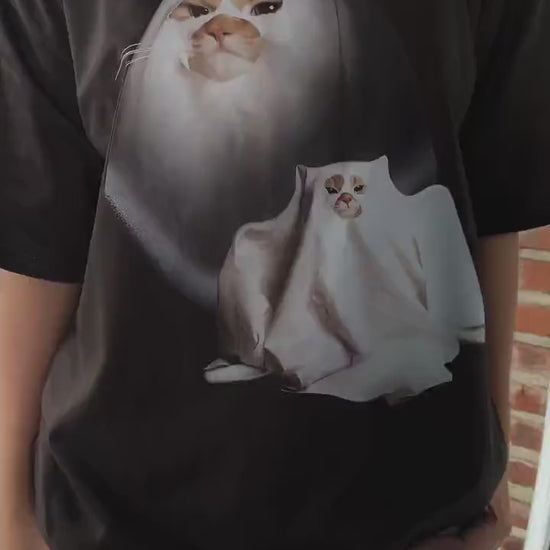 Retro Funny Ghost Kitten Shirt, Unisex Meme Cringe Funny Dumb Shirt, Cat Halloween Shirt, Spooky Season Cat Tee, Gift For Cat Lover BX25