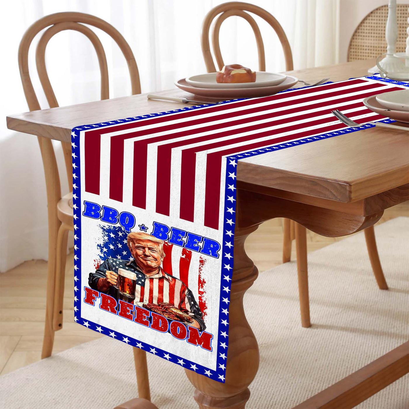 Beer BBQ Freedom Patriotic Patriotic Table Runner, Trump 4th of July Table Runner for Kitchen