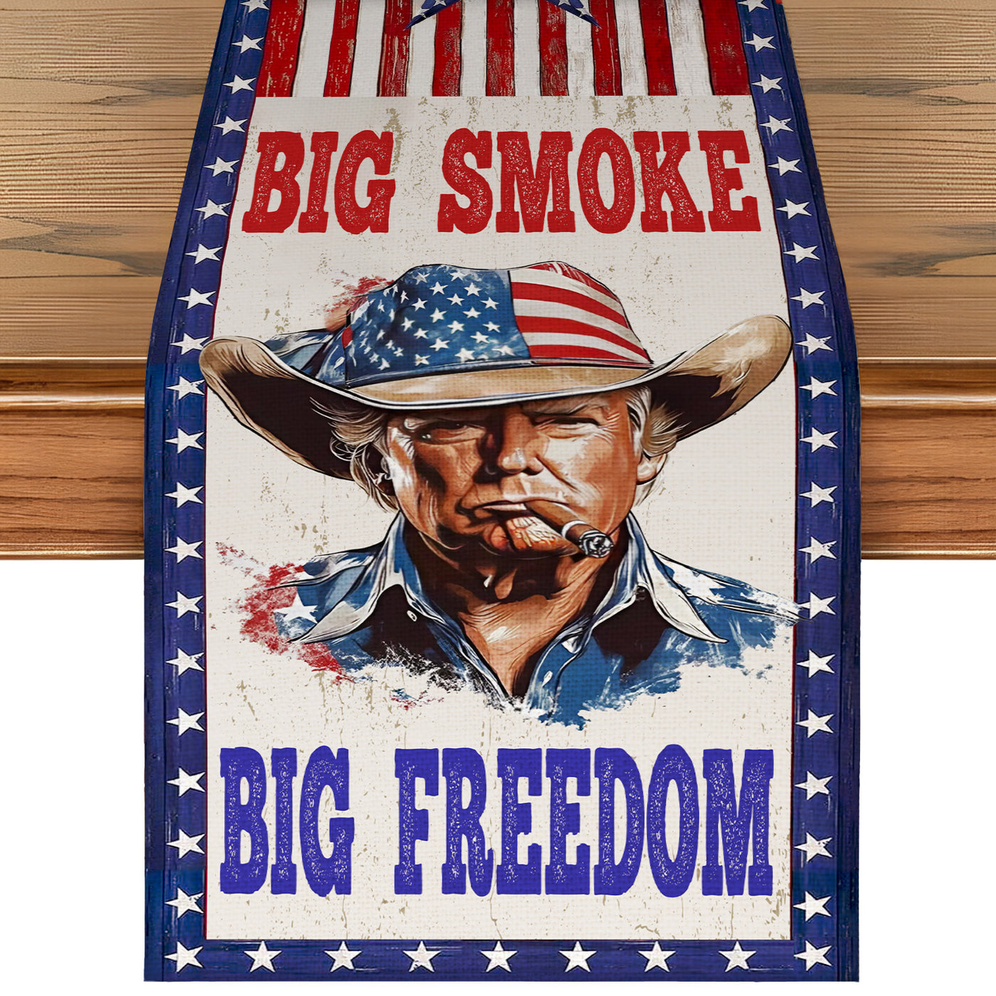 Big Smoke Big Freedom Trump Table Runner, Retro Western USA, Trump 4th Of July Table Runner For Kitchen