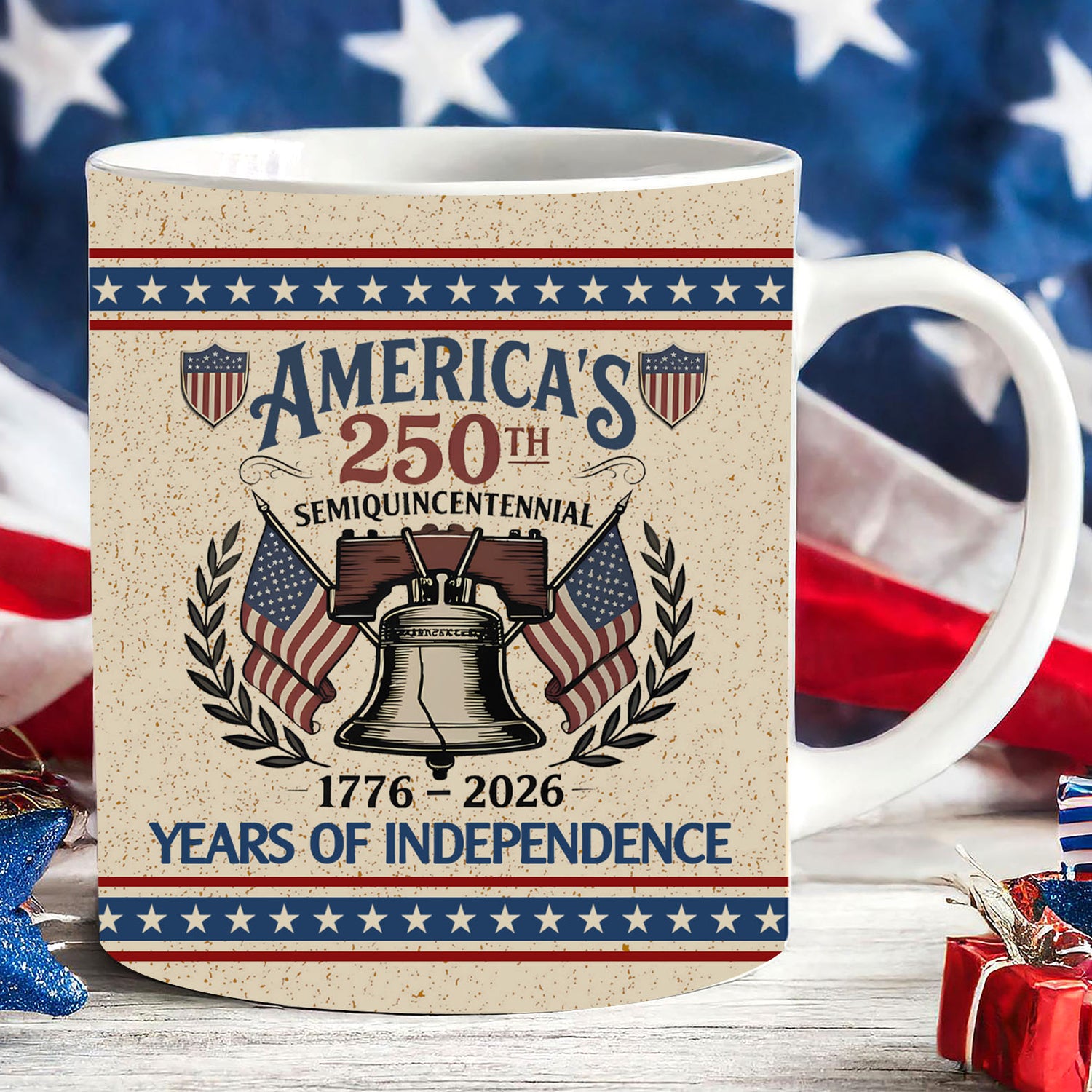 250 Years Anniversary White Mug | Semiquincentennial 1776–2026 Coffee Cup | Patriotic Liberty Bell Ceramic Mug 684423