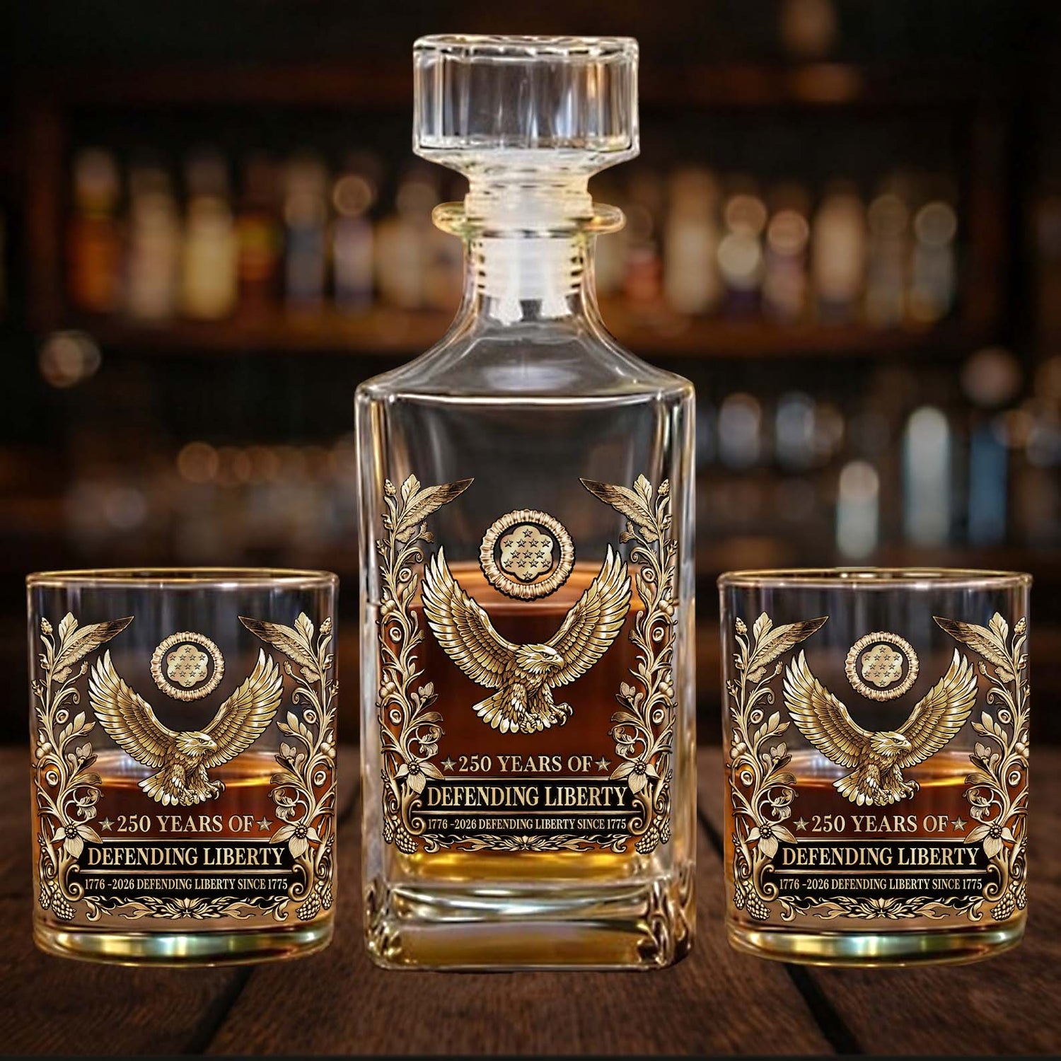 250 Years of Defending Liberty Whiskey Decanter Set, Patriotic 1776–2026 Whiskey Bottle Whiskey Glass