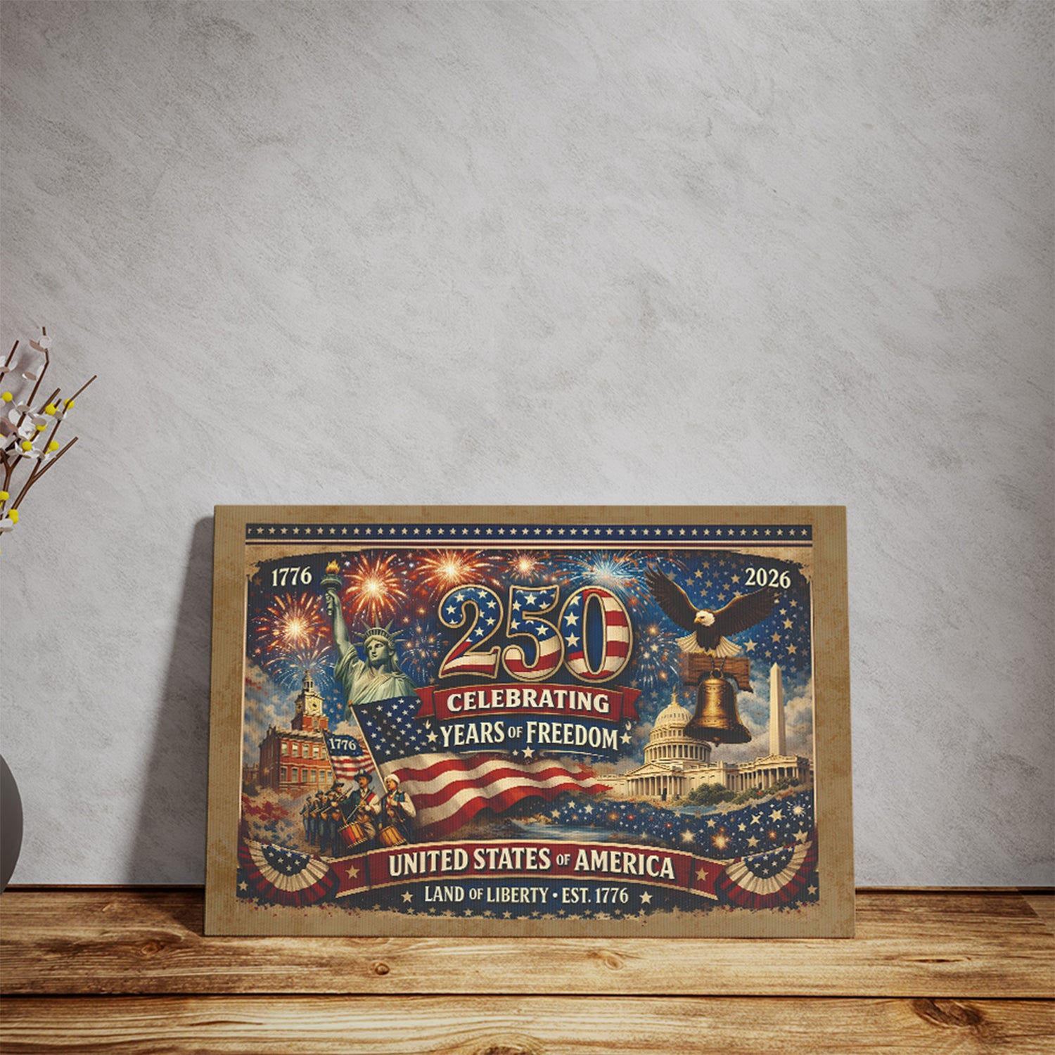 250 Years of Freedom Canvas, USA Land of Liberty 1776 Canvas, Patriotic 4th of July Canvas