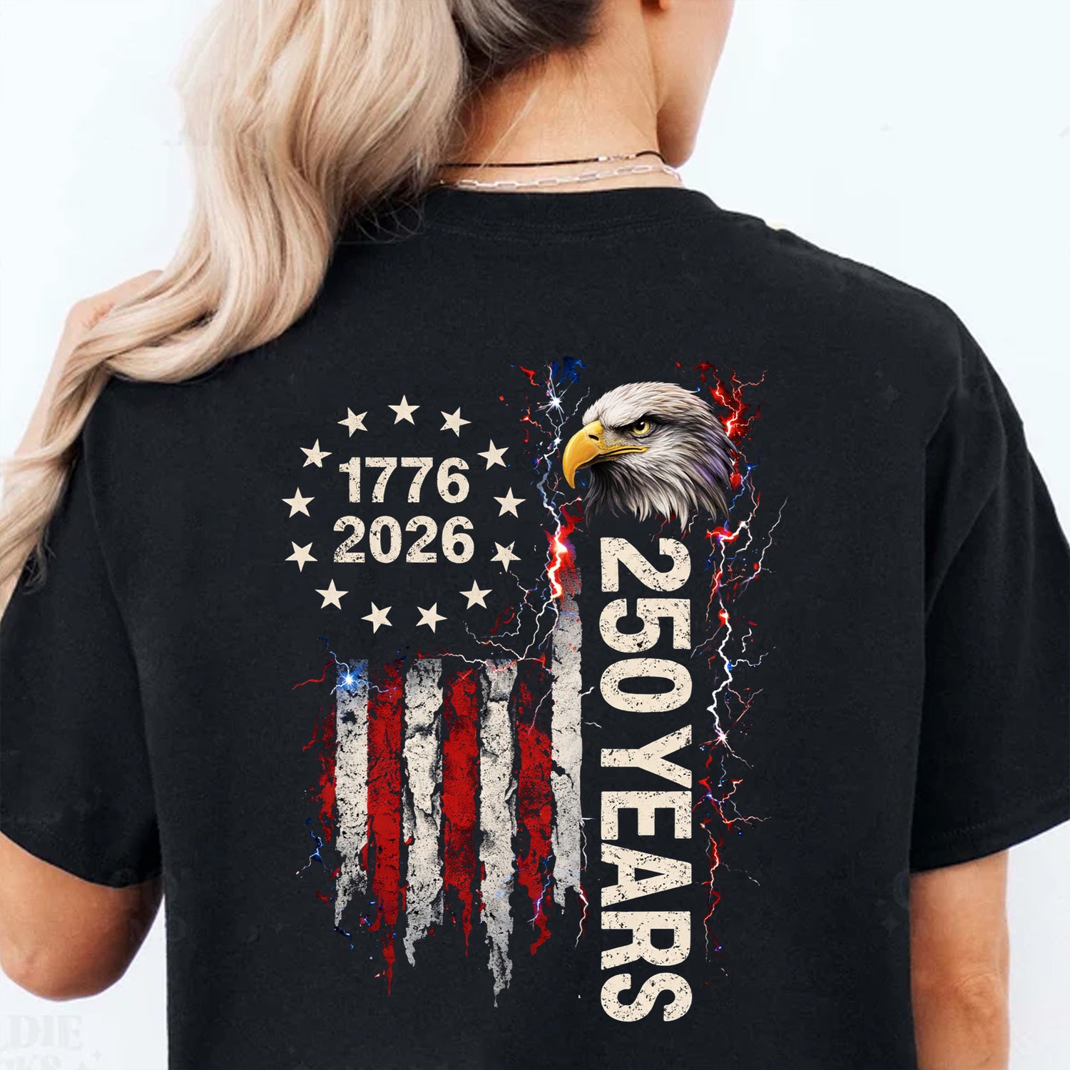 250 Years Patriotic Eagle Back Shirt, 1776-2026 US Flag T-Shirt, 4th of July Independence Day Gift Tee