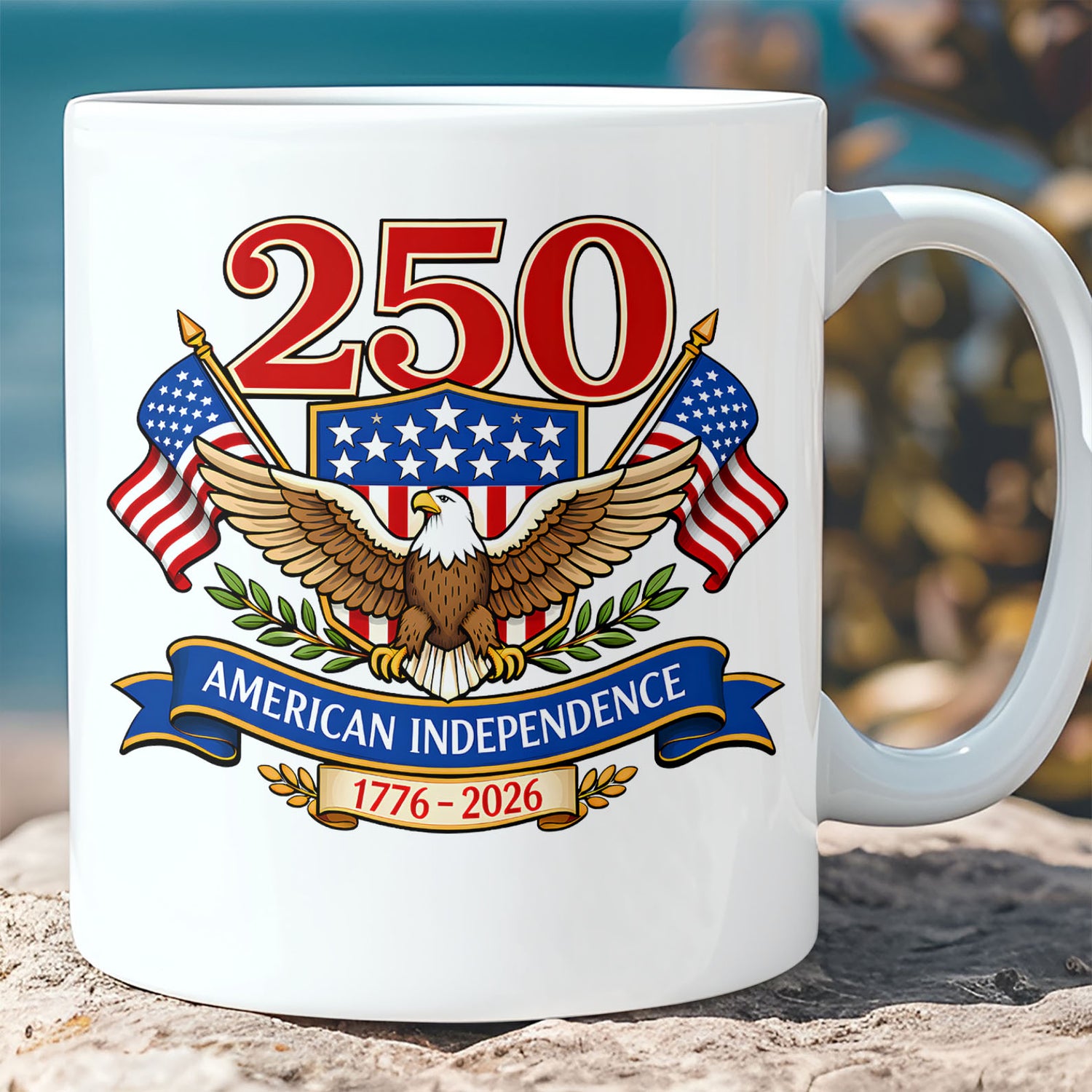 This 250 Years USA Anniversary white mug and accent mug feature a detailed patriotic design highlighting an eagle with outstretched wings set against the US flag and the commemorative years 1776–2026. The artwork reflects themes of freedom, strength, and national pride in recognition of America’s historic milestone. Designed for everyday use, these mugs are suitable for coffee, tea, or other beverages while also serving as a decorative piece for 4th of July celebrations, Independence Day gatherings, or patriotic displays.