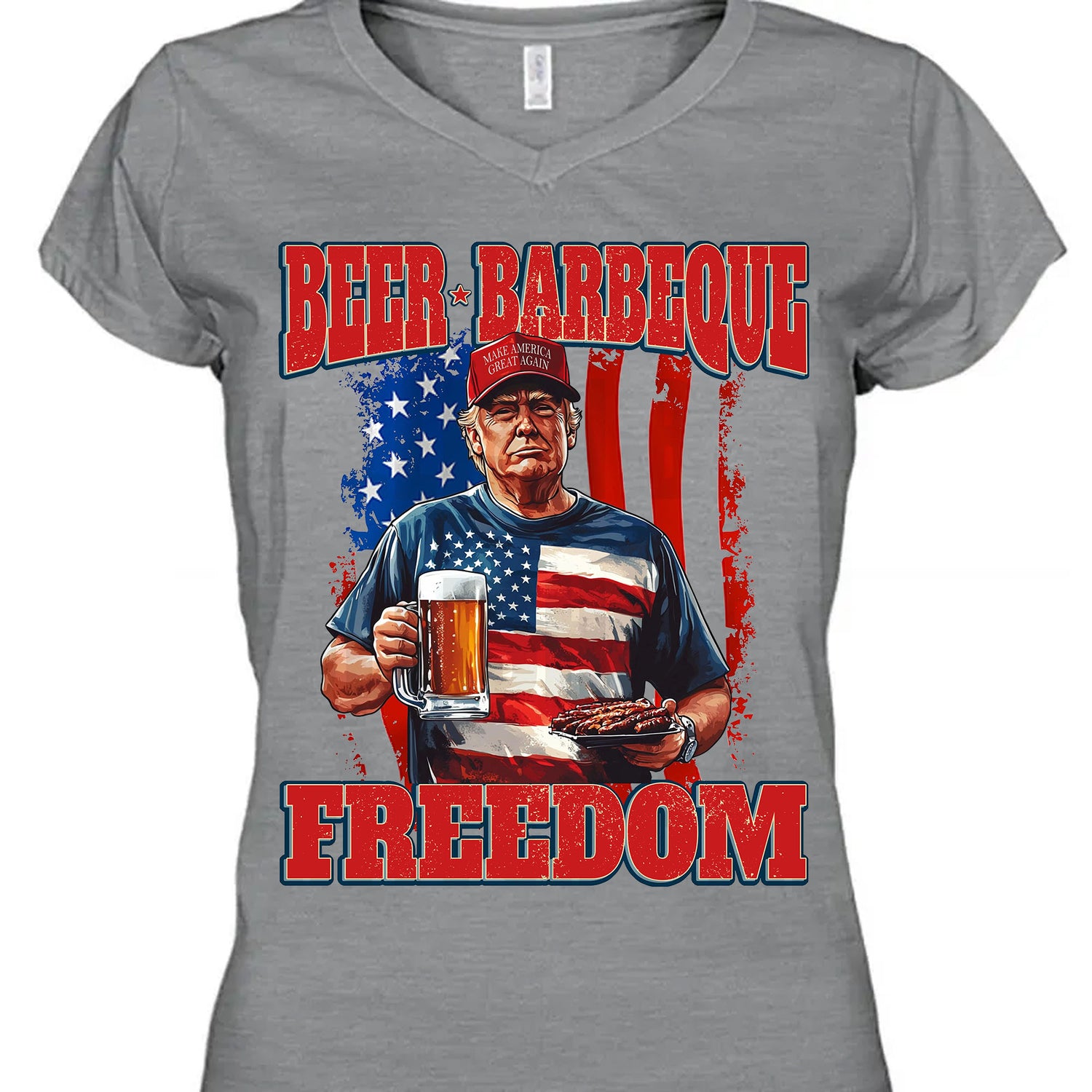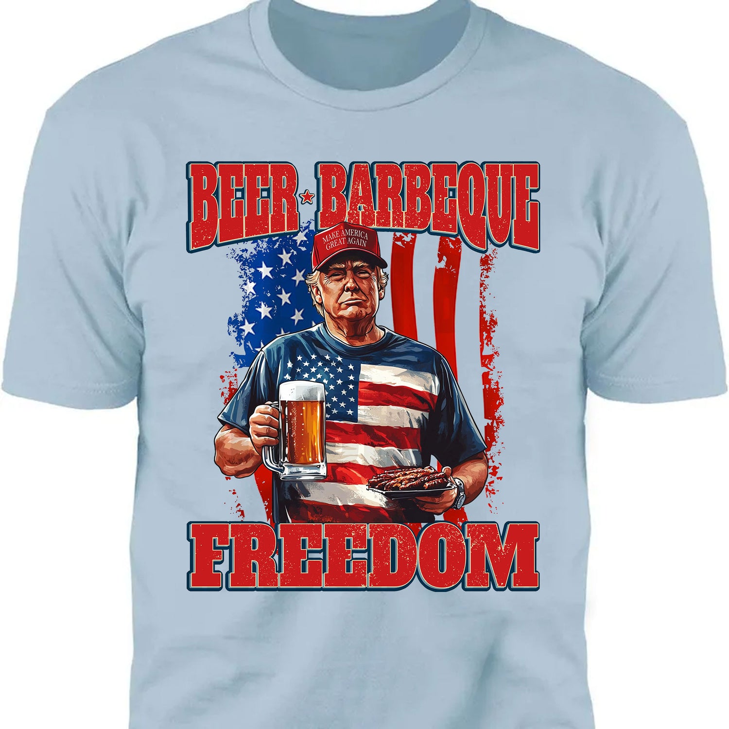 Declare your independence in bold, unapologetic style with the ultimate 4th of July party shirt! Whether you're firing up the grill, cracking open a cold one, or just want to make your stance known loud and proud—this “Beer. Barbeque. Freedom.” Trump T-Shirt says it all.