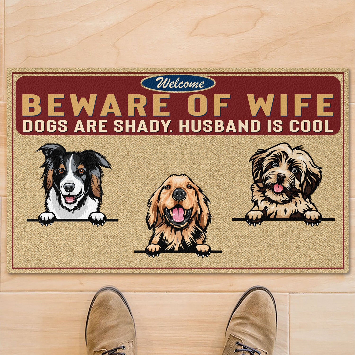 Beware Of Wife Dogs Are Shady Husband Is Cool Personalized Custom Photo Dog Cat Doormat C708