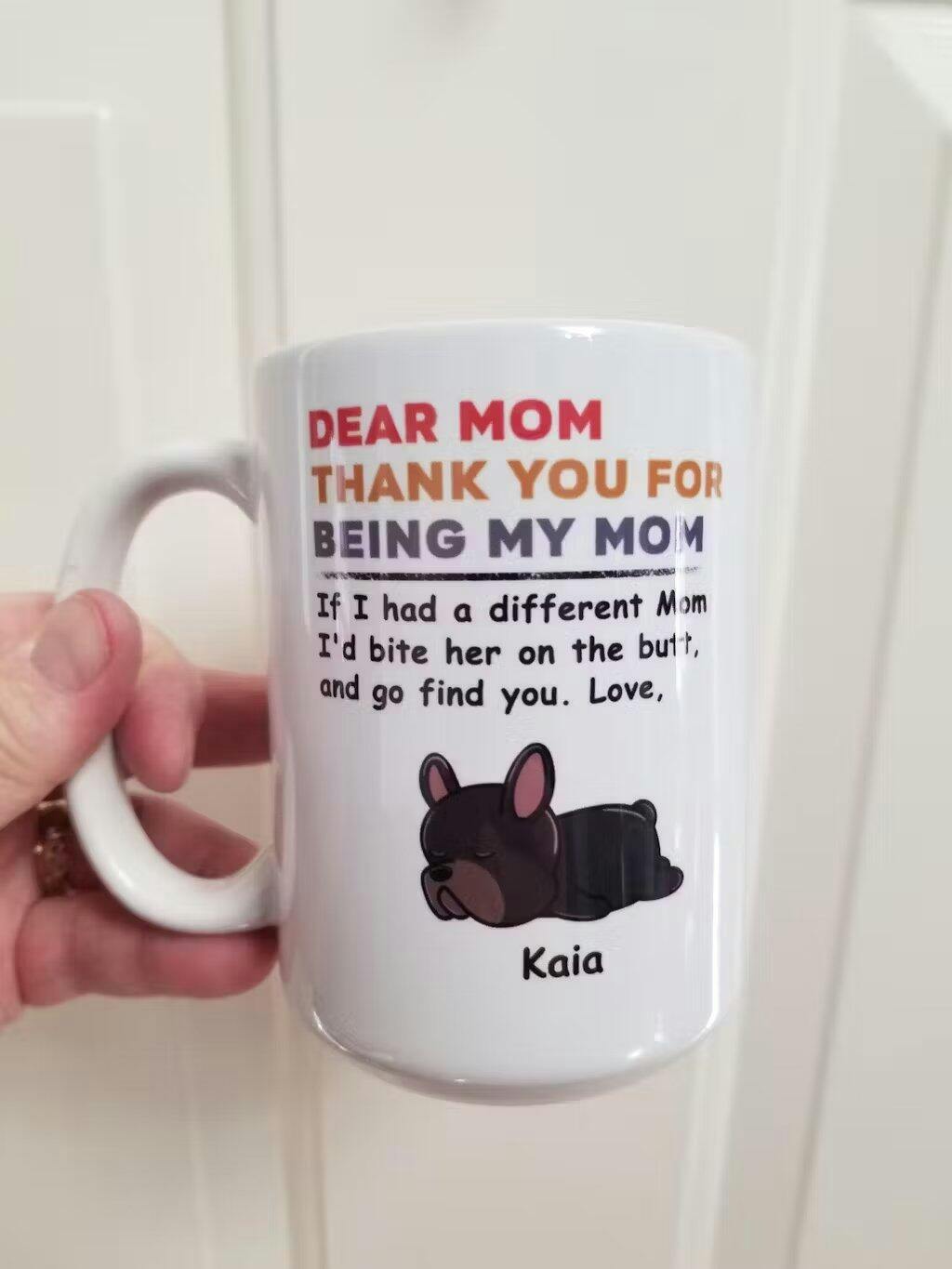 Hi there! Thank you for taking the time to leave a review for our Bite The Butt Personalized Custom Dog Mug C811. We are so happy to hear that you love it and that it lived up to your expectations. We appreciate your support and hope you continue to enjoy your new mug. Thanks again for choosing our product!