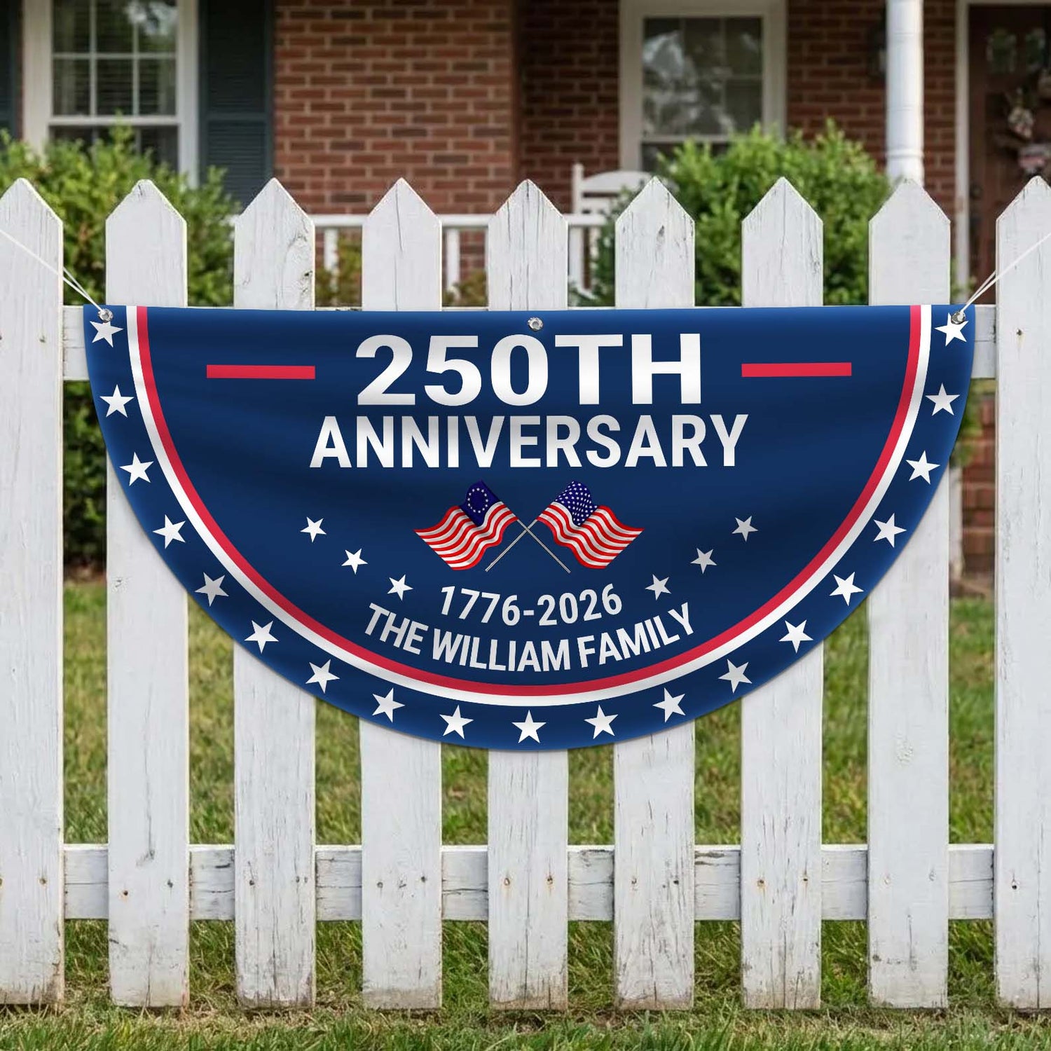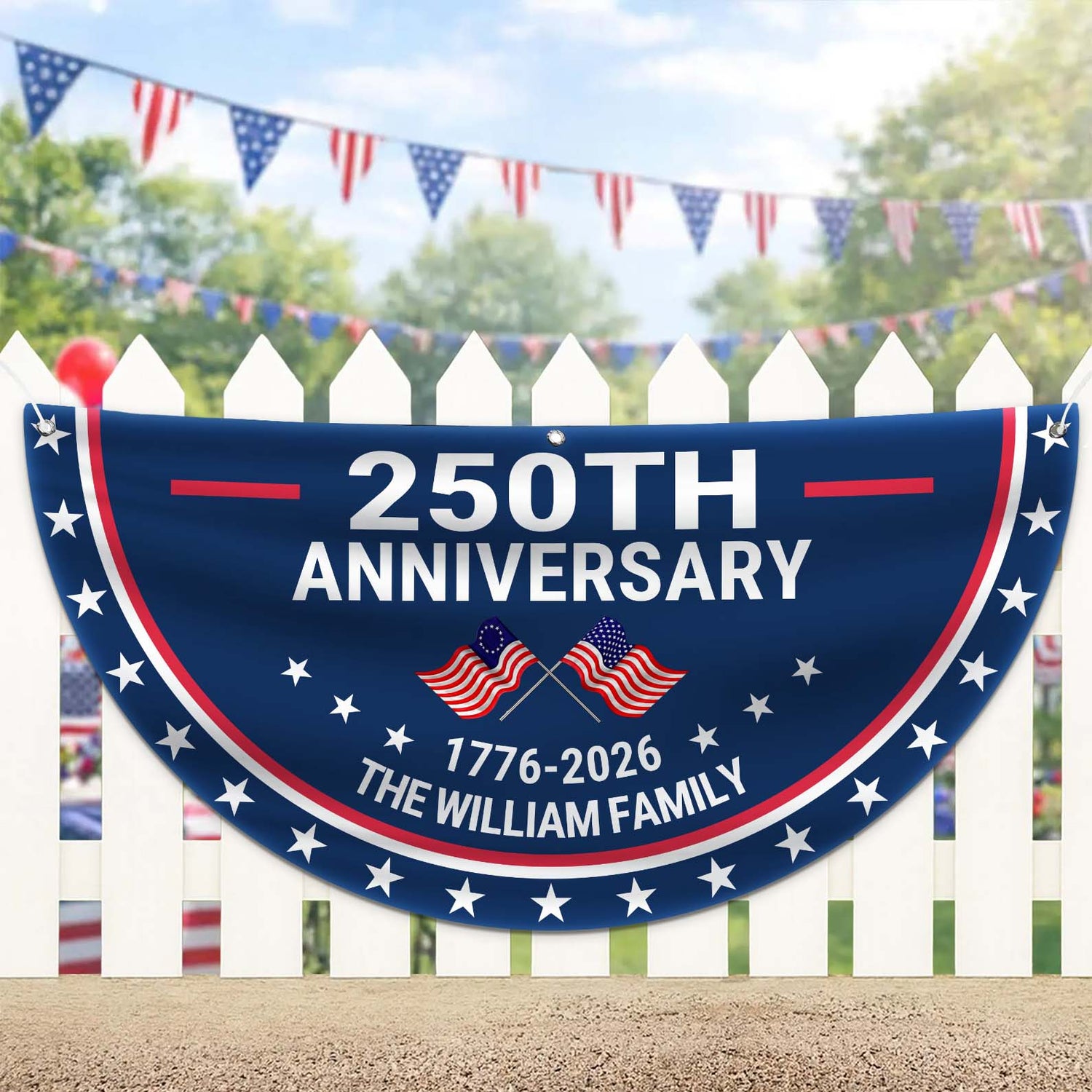 Custom Name 250 Years Anniversary Semicircle Flag, Personalized 1776–2026 House Flag