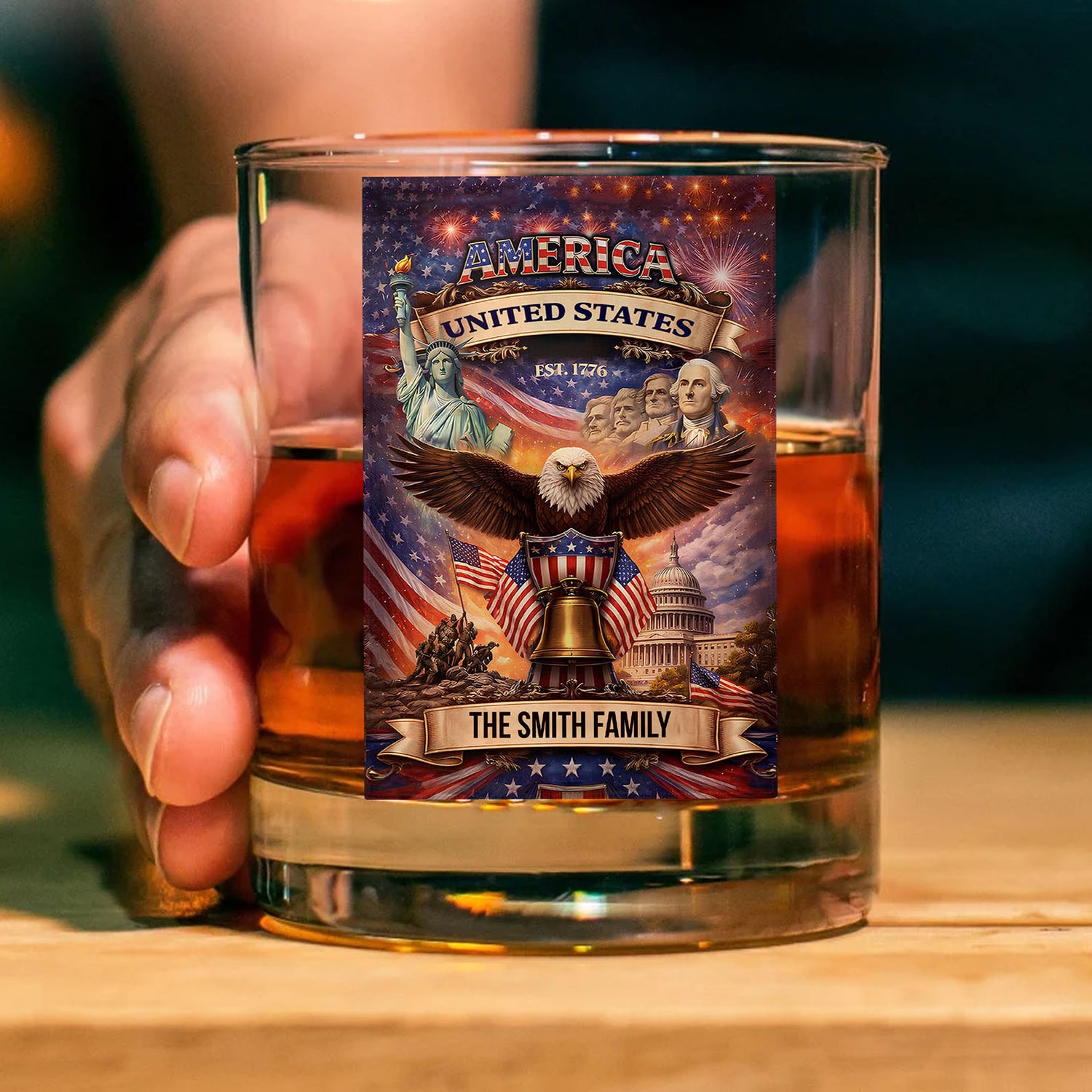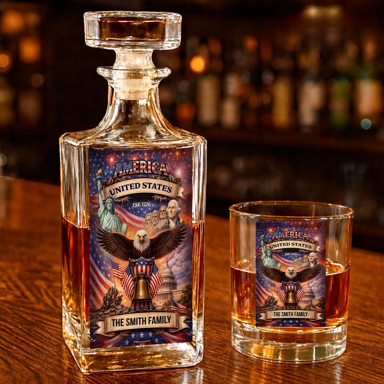 Custom Name 250 Years USA Anniversary Whiskey Decanter Set, Patriotic 1776–2026 Whiskey Glass Whiskey Bottle