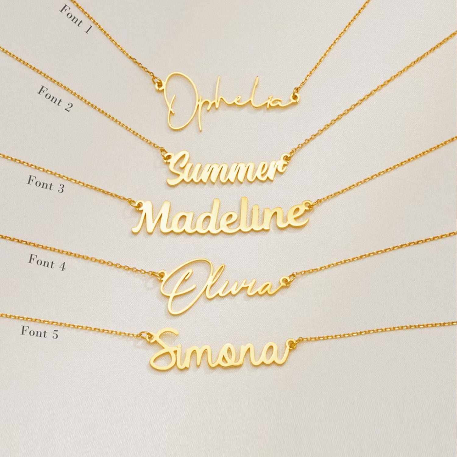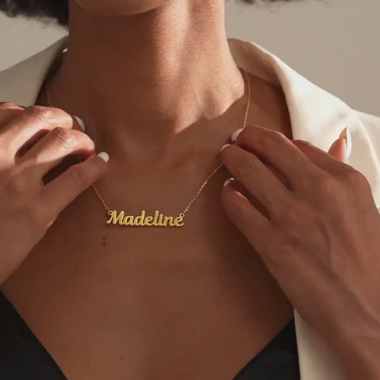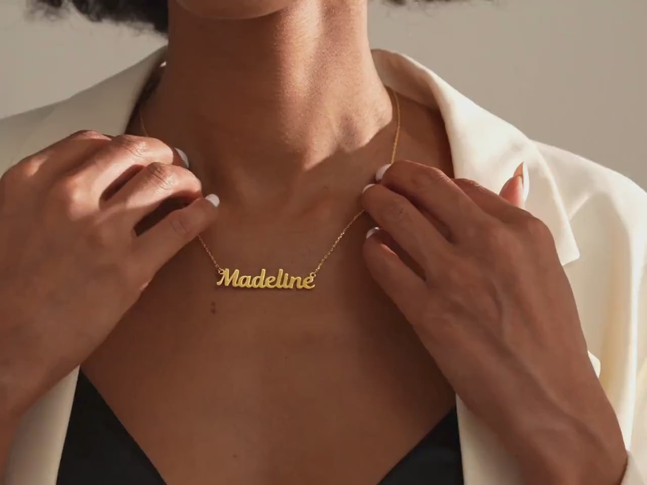 This elegant custom name necklace is crafted with a beautiful 18K gold-plated finish, designed to showcase any name in a stylish script font. Perfect for everyday wear or special occasions, this personalized piece adds a meaningful and unique touch to any outfit. Whether you choose your own name, a loved one’s, or a special word, it becomes a timeless keepsake full of sentiment. Lightweight and versatile, it’s an ideal gift for birthdays, anniversaries, or Mother’s Day, making it a thoughtful and cherished jewelry piece for her.