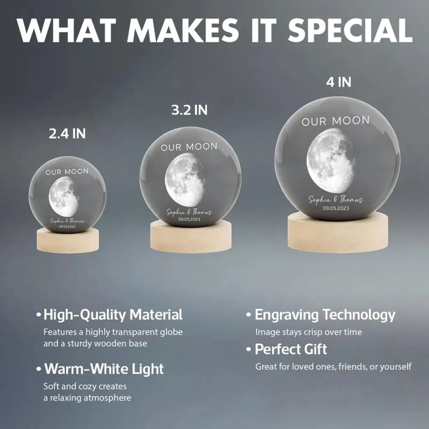 Make your big news shine with our Custom Photo Crystal Ball Night Light, a meaningful and unforgettable way to announce a pregnancy. Personalized with your chosen photo, this crystal ball night light uses precision 3D laser engraving to transform a precious image into a glowing keepsake filled with love and emotion.