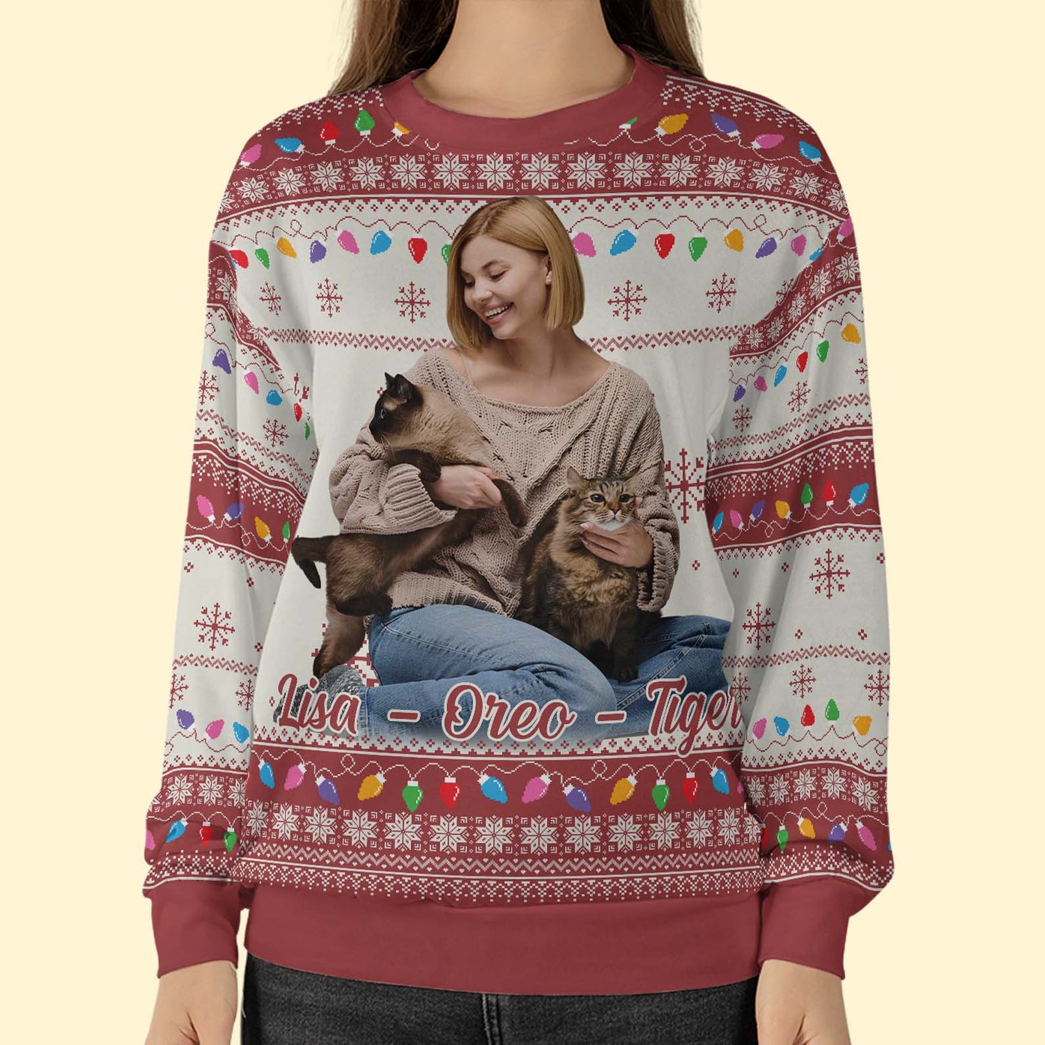 Custom Photo Ugly Sweater, Funny Photo Christmas All-Over-Printed Sweatshirt, Gift For Dog Lovers Cat Lovers