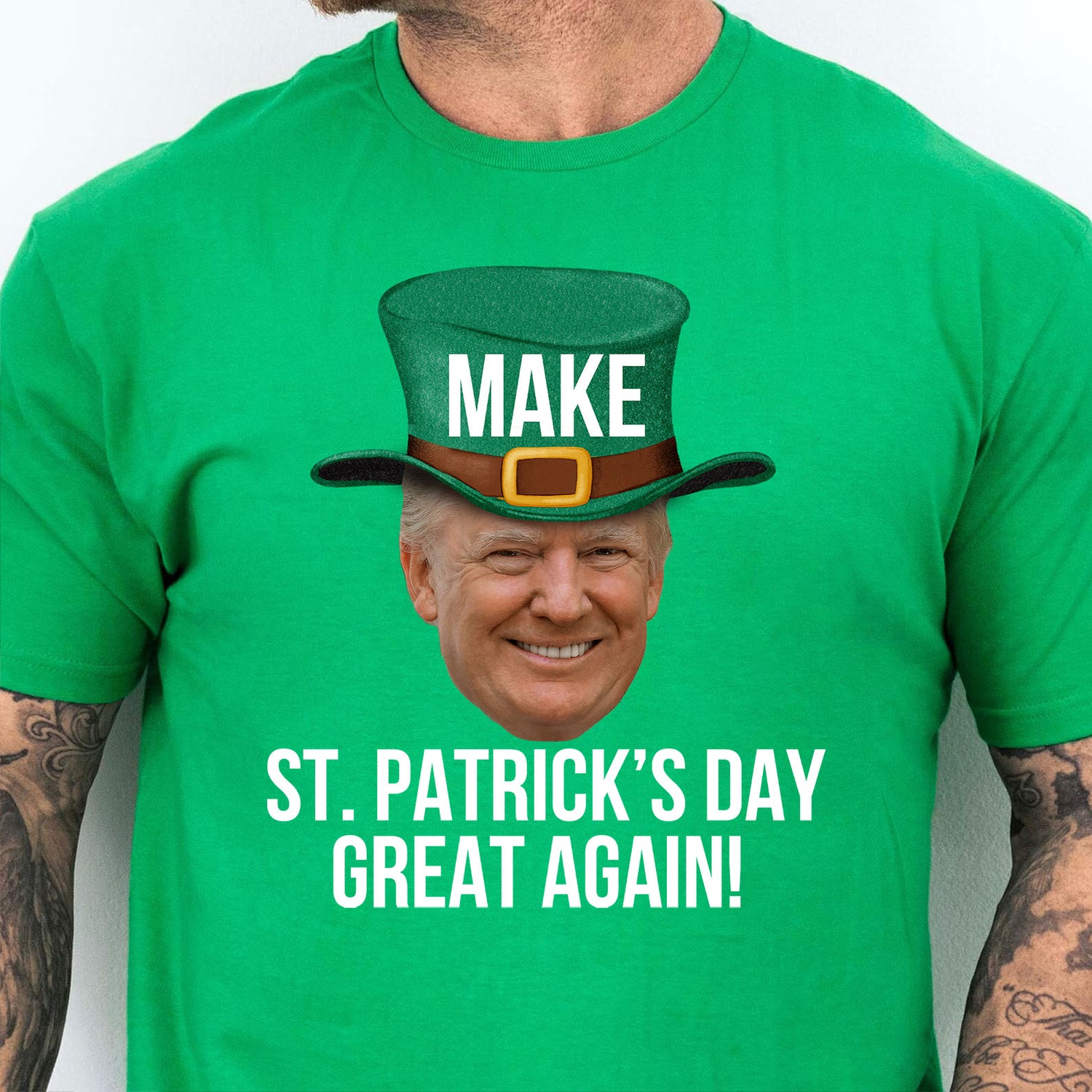 Celebrate St. Patrick's Day with a twist of humor in our "Donald Trump Make St. Patrick's Day Great Again" dark shirt. This funny Trump-themed T-shirt is perfect for those who want to combine political flair with festive spirit. Made from high-quality materials, this Irish shirt is comfortable and stylish, making it ideal for parties, parades, or casual outings. Show off your unique style and sense of humor this St. Patrick's Day with a shirt that’s sure to spark conversations!