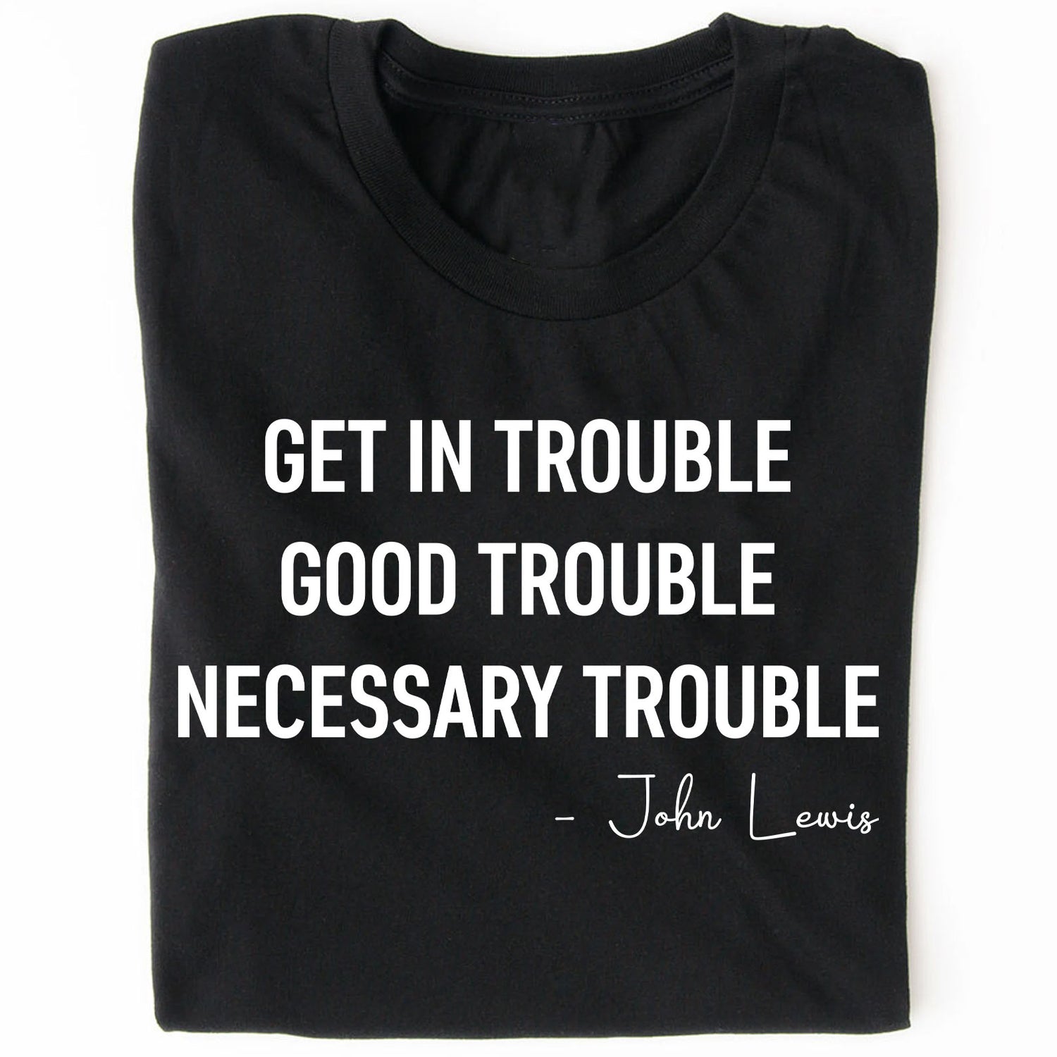 Honor the legacy of civil rights icon John Lewis with this bold and inspiring graphic tee. Featuring his iconic quote in clean, modern typography and a handwritten-style signature, this shirt is a powerful statement piece for activists, change-makers, and anyone who believes in standing up for what’s right.