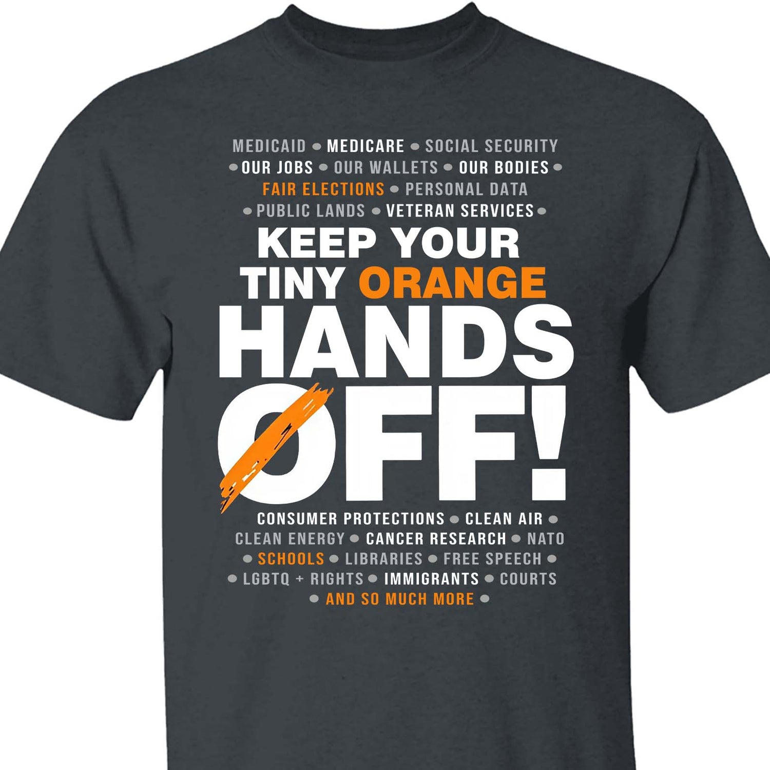 Hands Off Shirt – 8647 Anti Trump Political Activist Tee, Get Your Tiny Orange Hands Off Message Dark Shirt