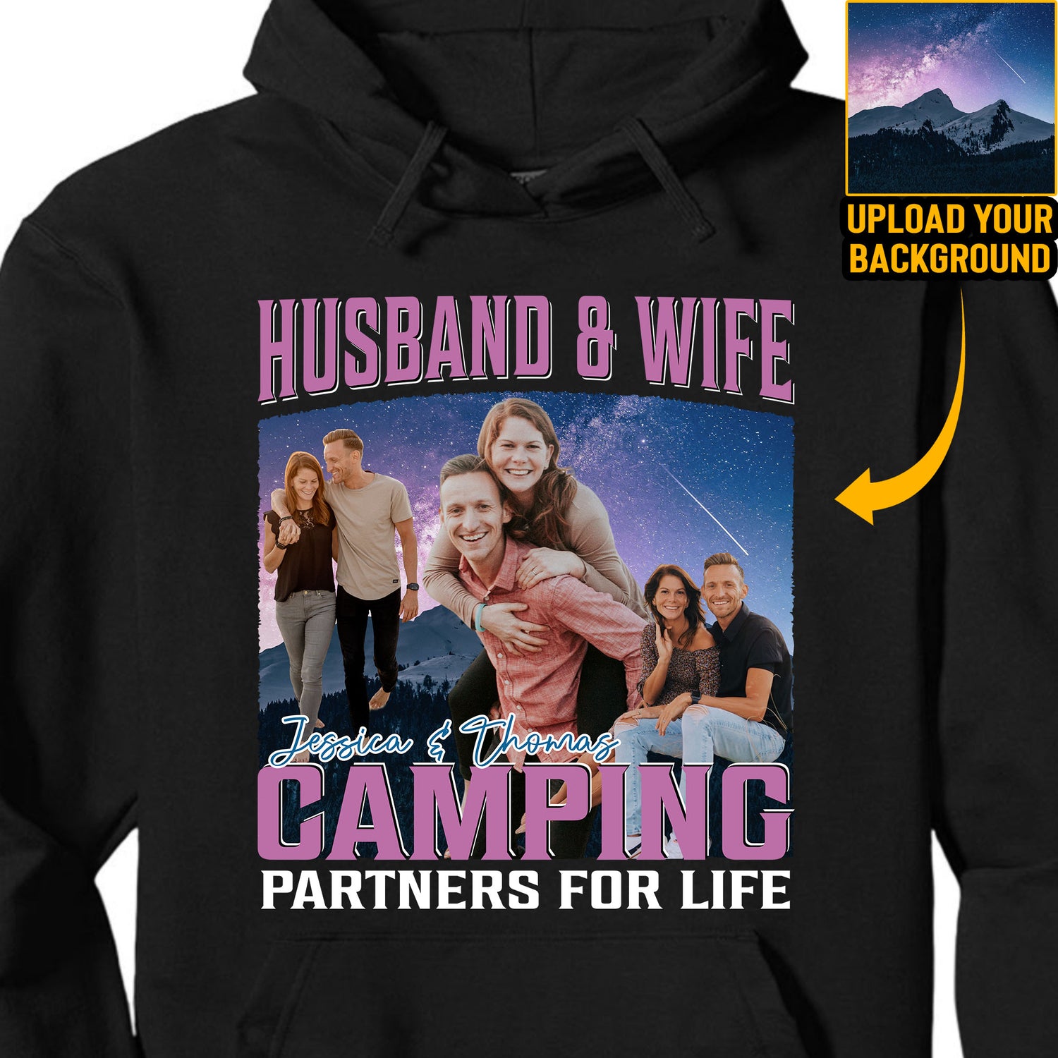 Husband & Wife Camping Partners For Life, Live Preview Personalized Couples Shirt, Custom Valentines Photo Shirt C870