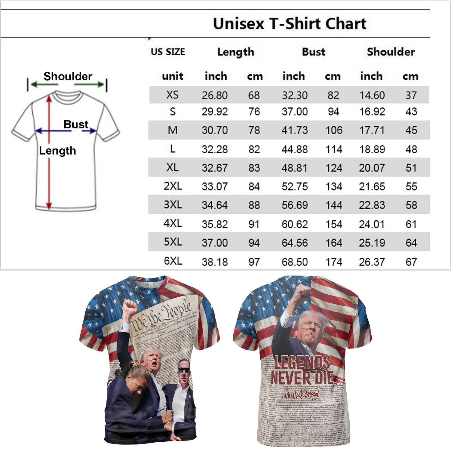 Legends Never Die Unisex 3D T-Shirt | We The People Shirt | Trump Fight Shirt | Trump Supporters All-Over Printed T-Shirt.