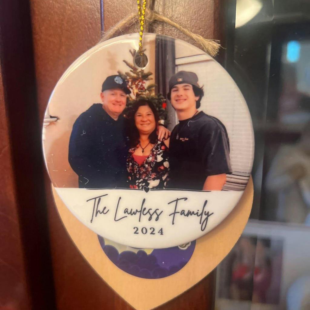 This ornament is made of clear acrylic material that is durable and lightweight. It has a round shape and a silver string that makes it easy to hang on your tree. You can upload your own photo and add any text you want, such as your family name, a holiday message, or a date. This ornament is a perfect gift for yourself or any family member in your life. Order yours today and enjoy the live preview feature that lets you see how your ornament will look before you buy it. This is a unique and personalized product that you won't find anywhere else!