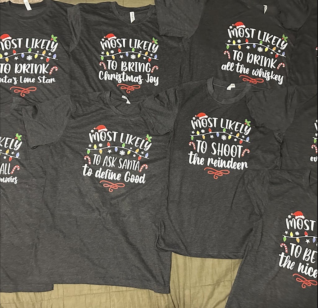 I LOVE these tees so much!! They exceeded my expectations and have never received a custom order as fast as I received my 9 shirts. I would give 6 stars, if it were an option. ⭐️⭐️⭐️⭐️⭐️⭐️