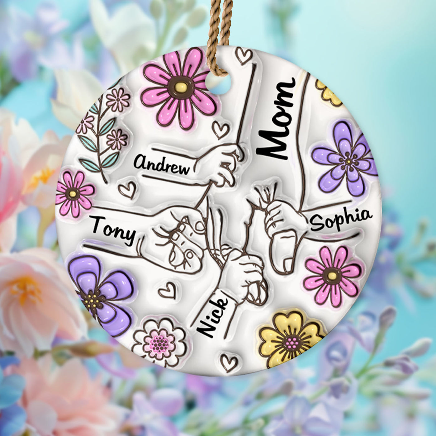 Mom You Hold Our Hands Present Circle Ornament, Personalized Custom Name and Title Mothers Day Ceramic Ornament, Family Gift, Gift for Mom, Gift for Wife.