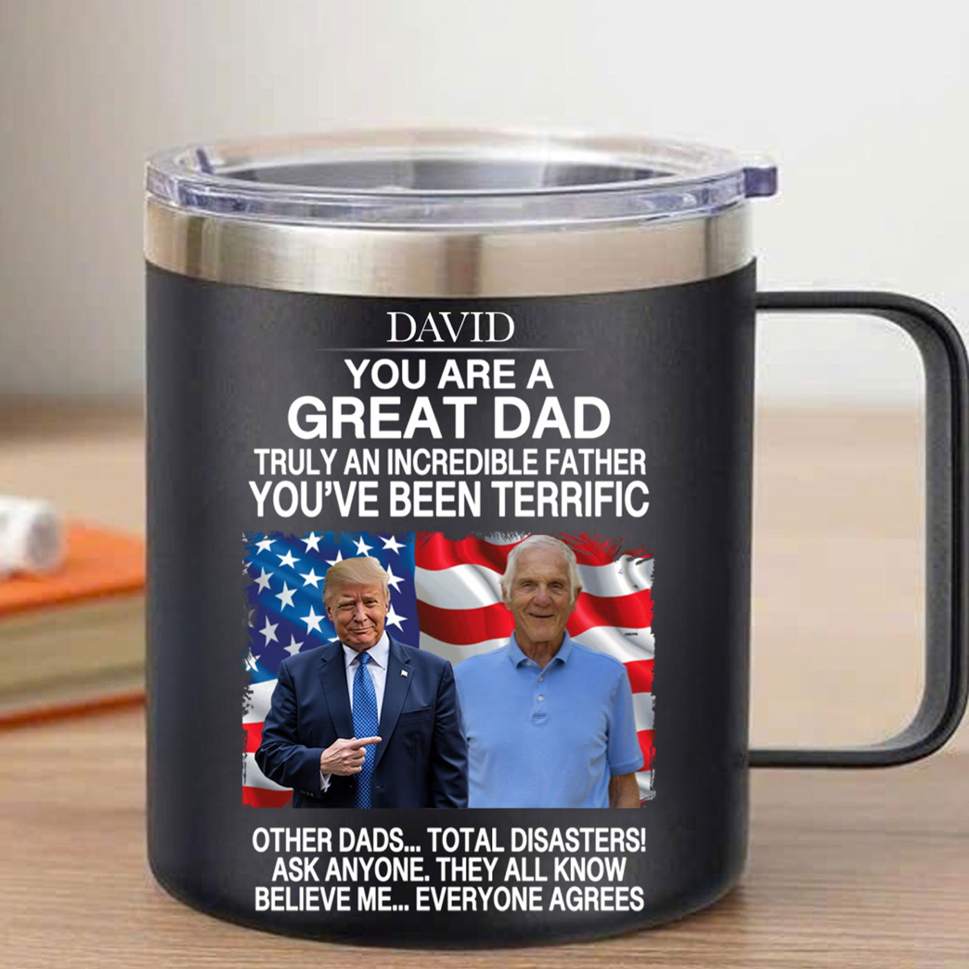 My Dad With Trump Custom Photo, Funny Father's Day Greeting Insulated Tumbler, Stainless Steel Tumbler With Handle, Gifts For Dad, Gifts For Husband 682058 - GOP