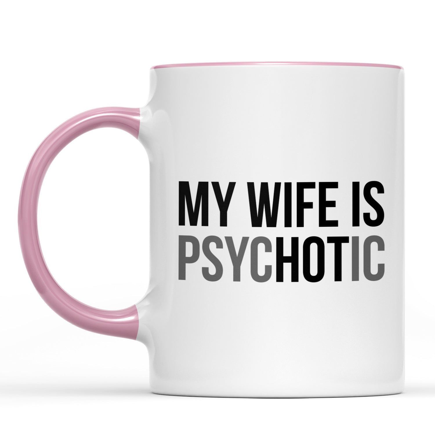 My Wife Is Psychotic Mug, Funny Husband Coffee Mug, Birthday Gift for Husband, Valentine White Mug Accent Mug 683879