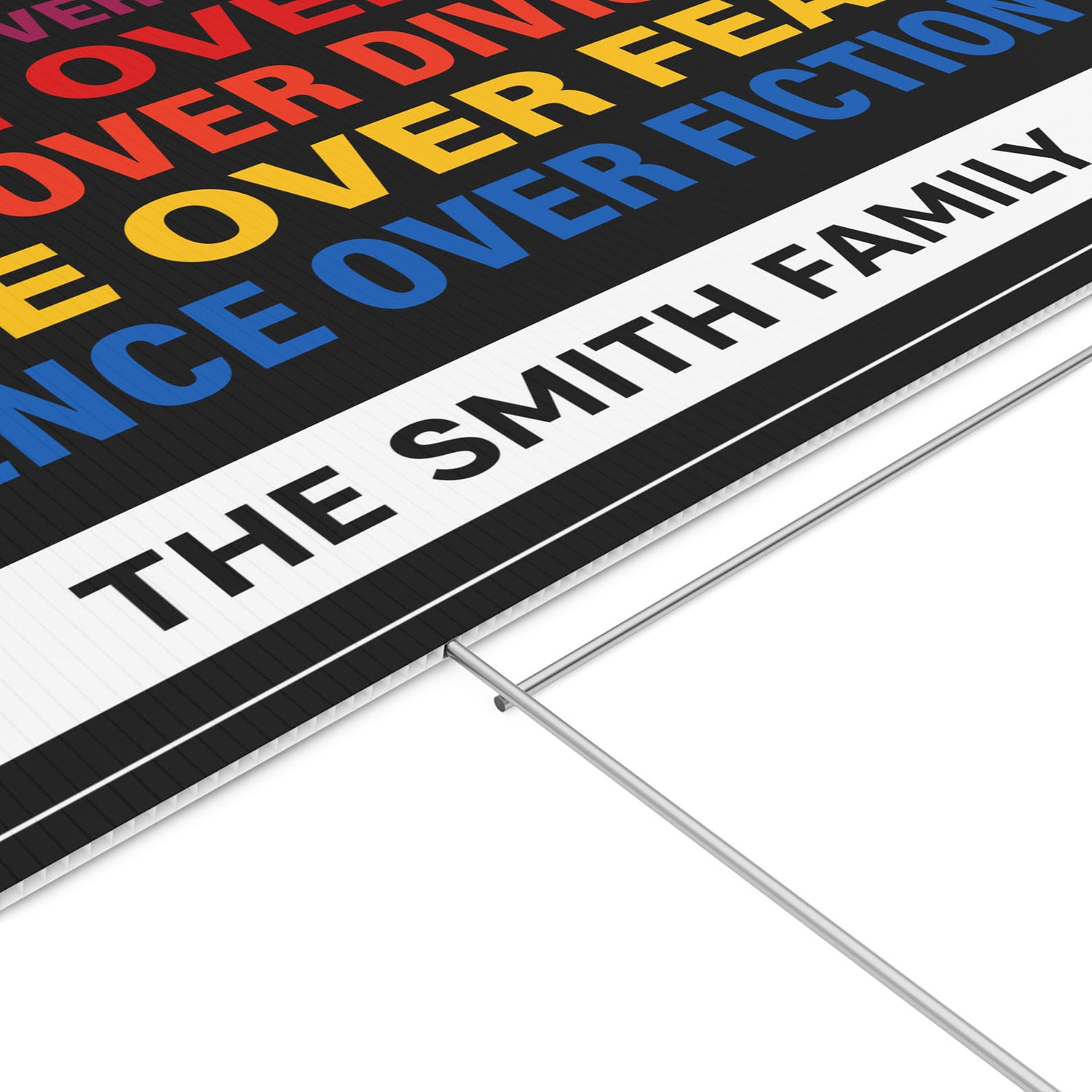 Crafted with durable materials for outdoor display, this yard sign is weather-resistant and ready to make a statement in your front yard, garden, or at rallies. The customizable bottom section lets you add your own message, family name, or rally cry to make it truly personal.