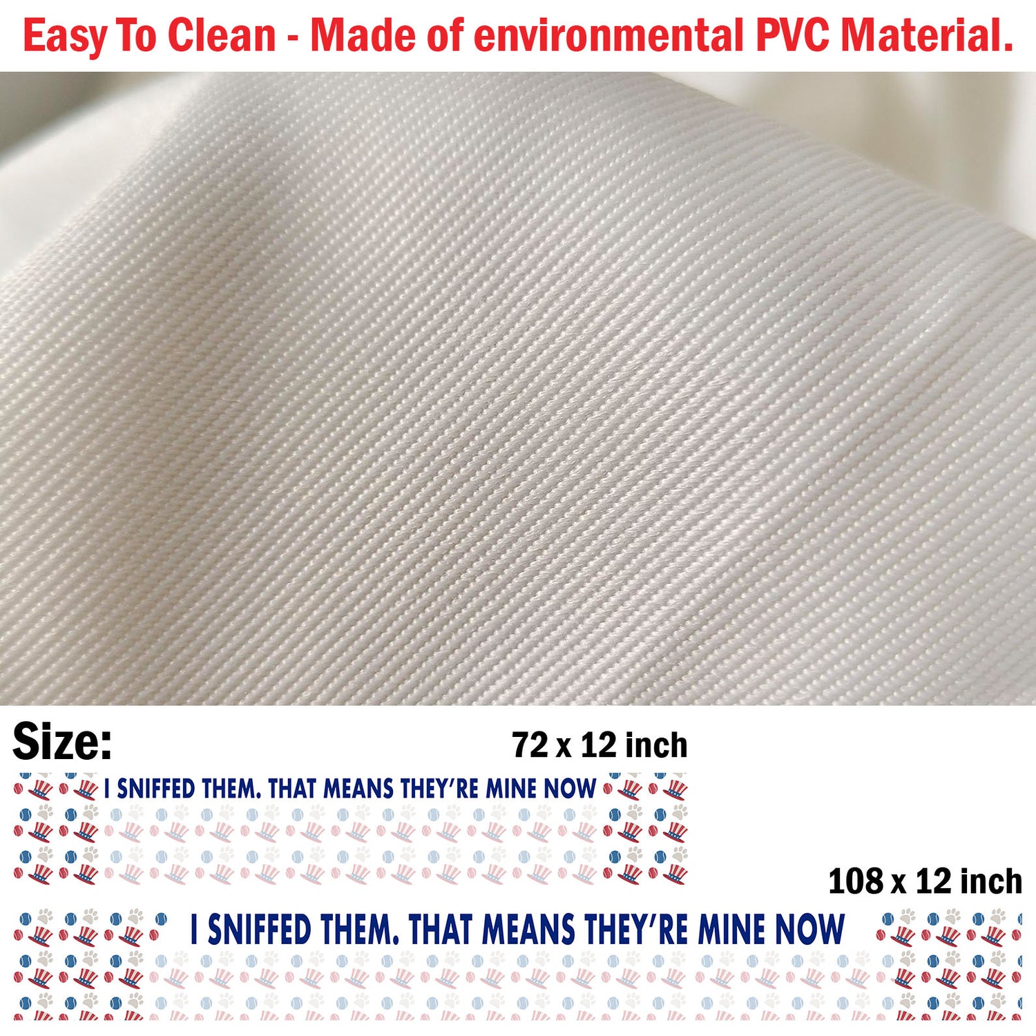 108 x 12 inches - Easy To Clean: Made of environmental PVC Material. Machine washable. In order to minimize shrinkage, dry it at low temperature and take it out before it is completely dry.