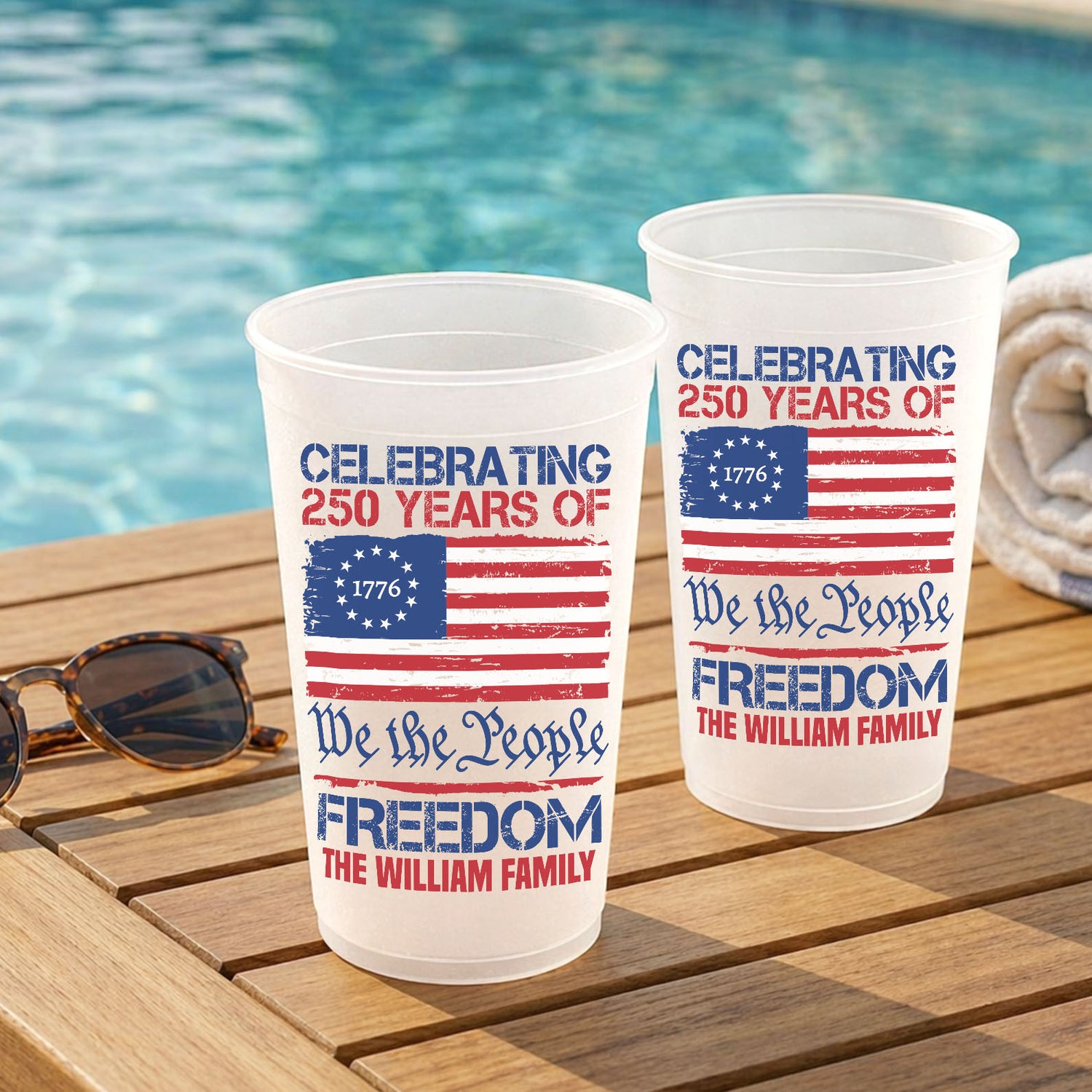 Personalized USA 250 Years Frosted Cups, Custom Family Name Cups, 4th of July 1776–2026 Party Cups