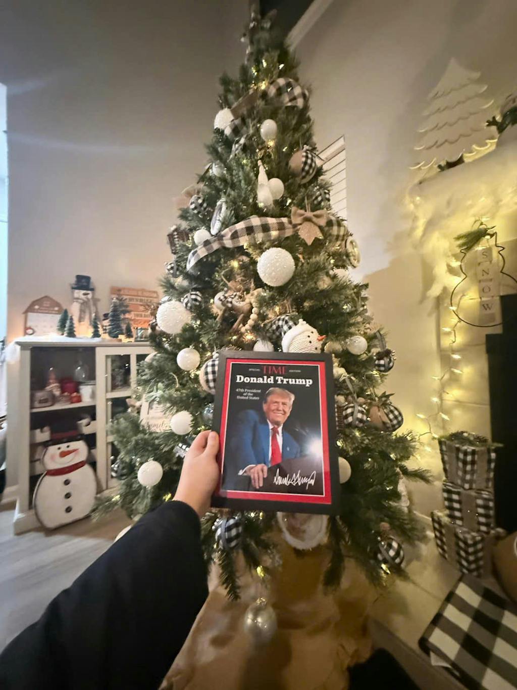 This elegant picture frame showcases a striking TIME magazine-inspired design featuring President-elect Donald Trump. The bold image captures a moment of triumph with Trump standing in front of a backdrop of American flags, symbolizing leadership and patriotism. The frame highlights a vibrant red border, polished black frame finish, and an authentic signature detail that adds a sophisticated touch. Perfect for commemorating a historical moment, this frame is a statement piece for your home or office. Honor this iconic moment in history! Add this premium picture frame to your decor or gift it to a fellow supporter.