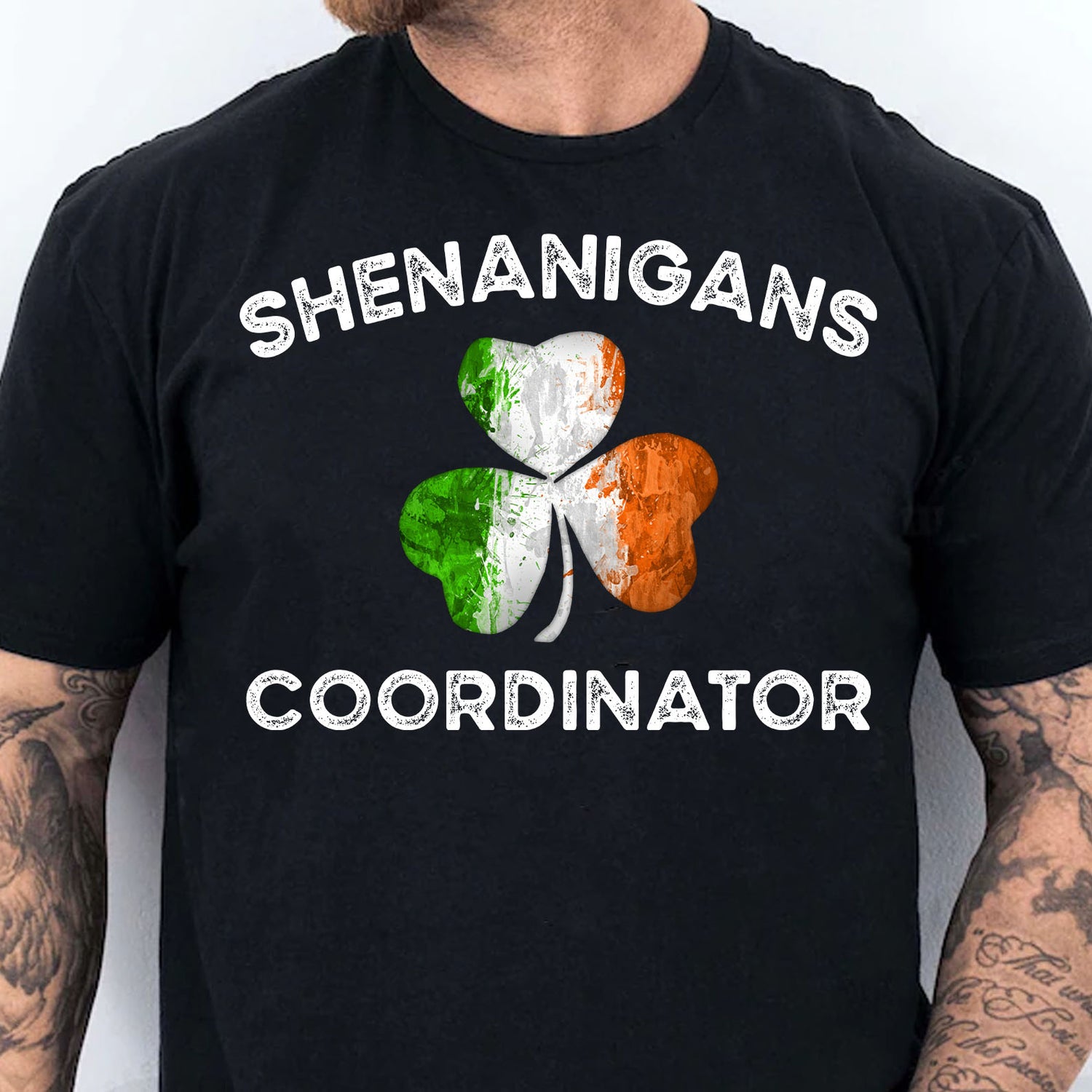 This fun and festive T-shirt is perfect for anyone who loves a bit of mischief! The design features a vibrant three-petal clover, with each petal showcasing one of the Irish flag's colors: green, white, and orange. The word "Shenanigans" is proudly displayed above the clover, while "Coordinator" is featured below, both in bold and playful lettering with grunge style. Be the life of the party and let everyone know who's in charge of the fun—grab this shirt today and get ready to coordinate some unforgettable shenanigans!