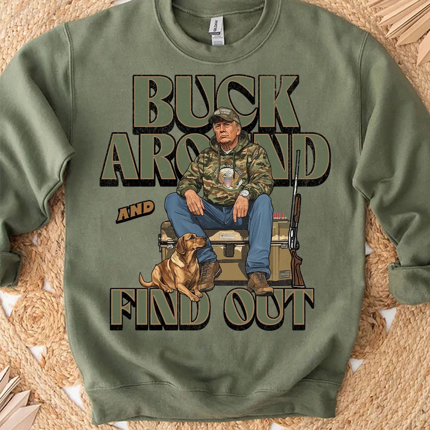 Trump Camo Hunting Shirt, Buck Around and Find Out Republican Outdoorsy Fishing Shirt Bright.