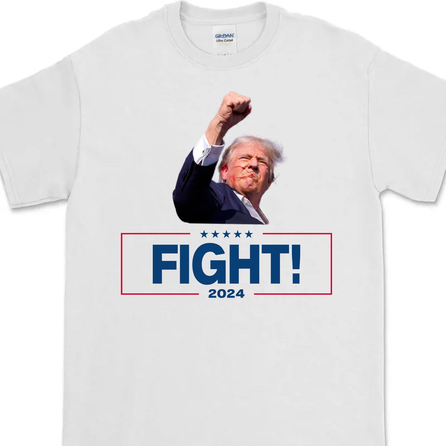 Show your support for the 45th president of the United States with this Donald Trump Fight fan shirt. This shirt features a high-quality print of Trump's face and signature. Whether you wear it to a rally, a party, or just around town, this shirt will make a bold statement and attract attention.