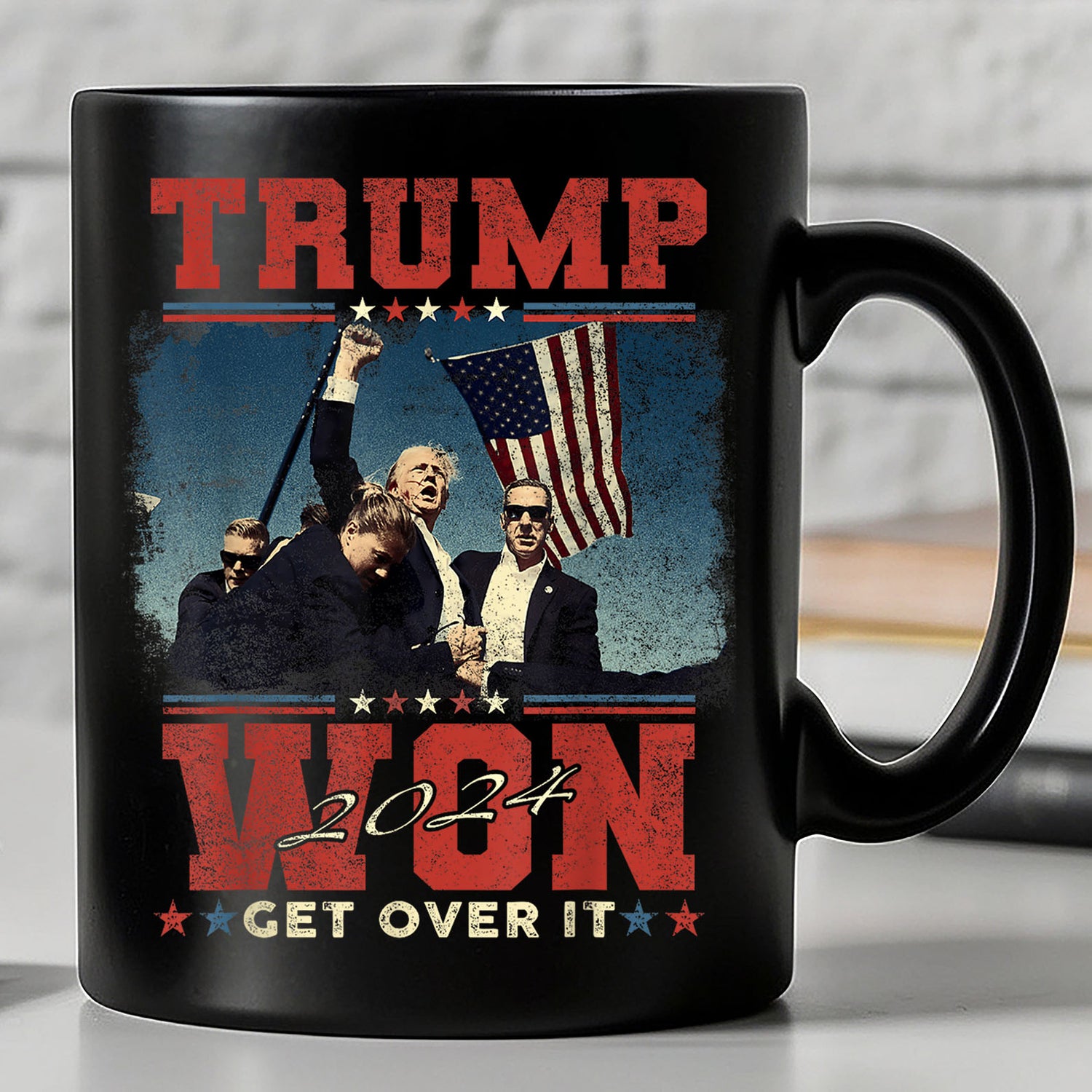 Celebrate the victory with our "Trump Won Get Over It" black mug! This ceramic mug is perfect for enjoying your favorite hot beverage while making a bold statement. Whether you're a supporter or looking for a unique gift, this mug is a great way to commemorate the 47th election win.