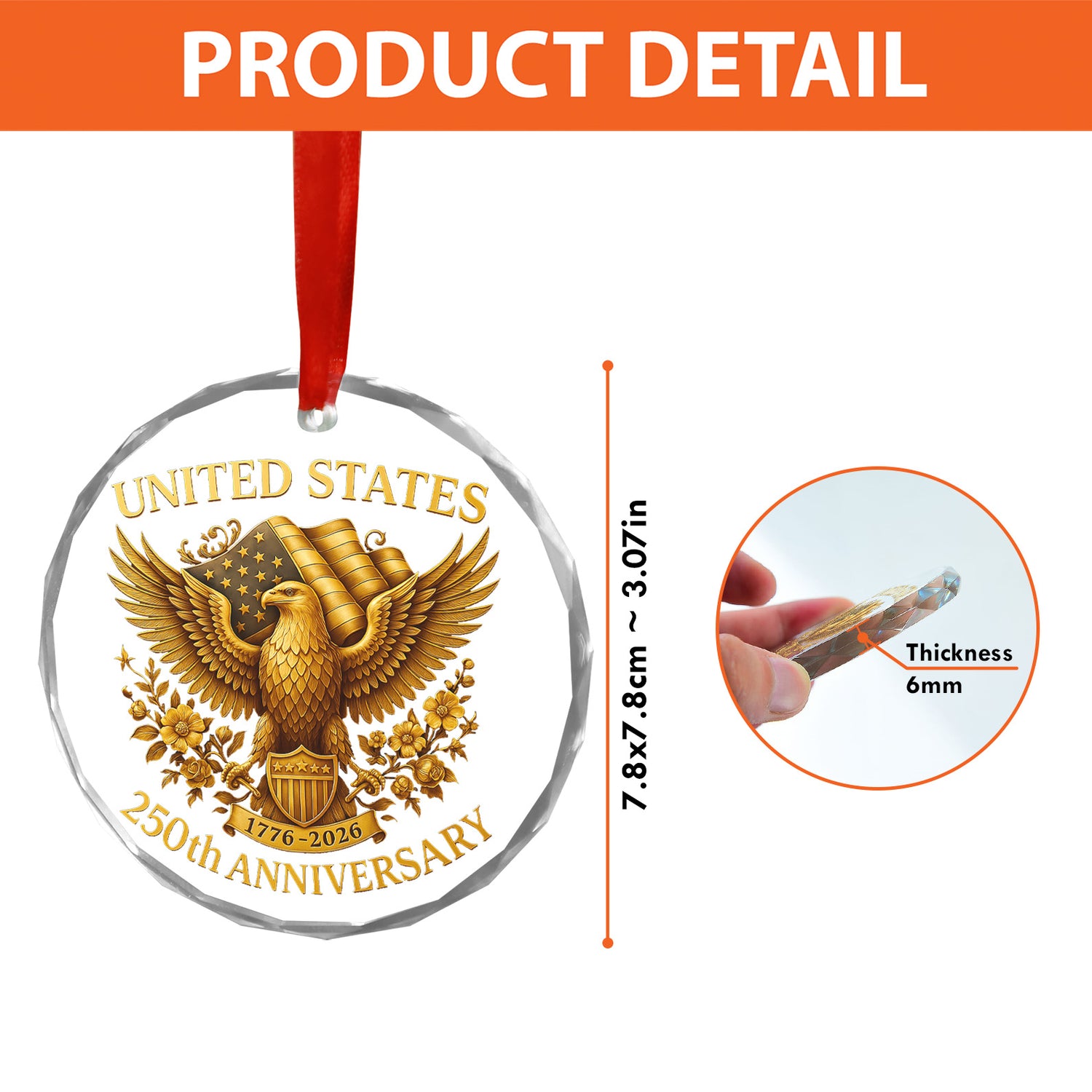 United States 250 Years Anniversary Glass Ornament | Patriotic 4th of July 1776–2026 Christmas Ornament 683407
