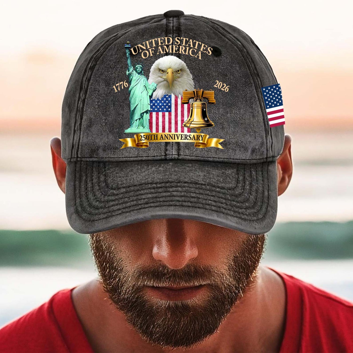 USA 250 Years 1776–2026 Printed Vintage Washed Denim Baseball Cap, Patriotic US Flag Eagle Liberty Hat