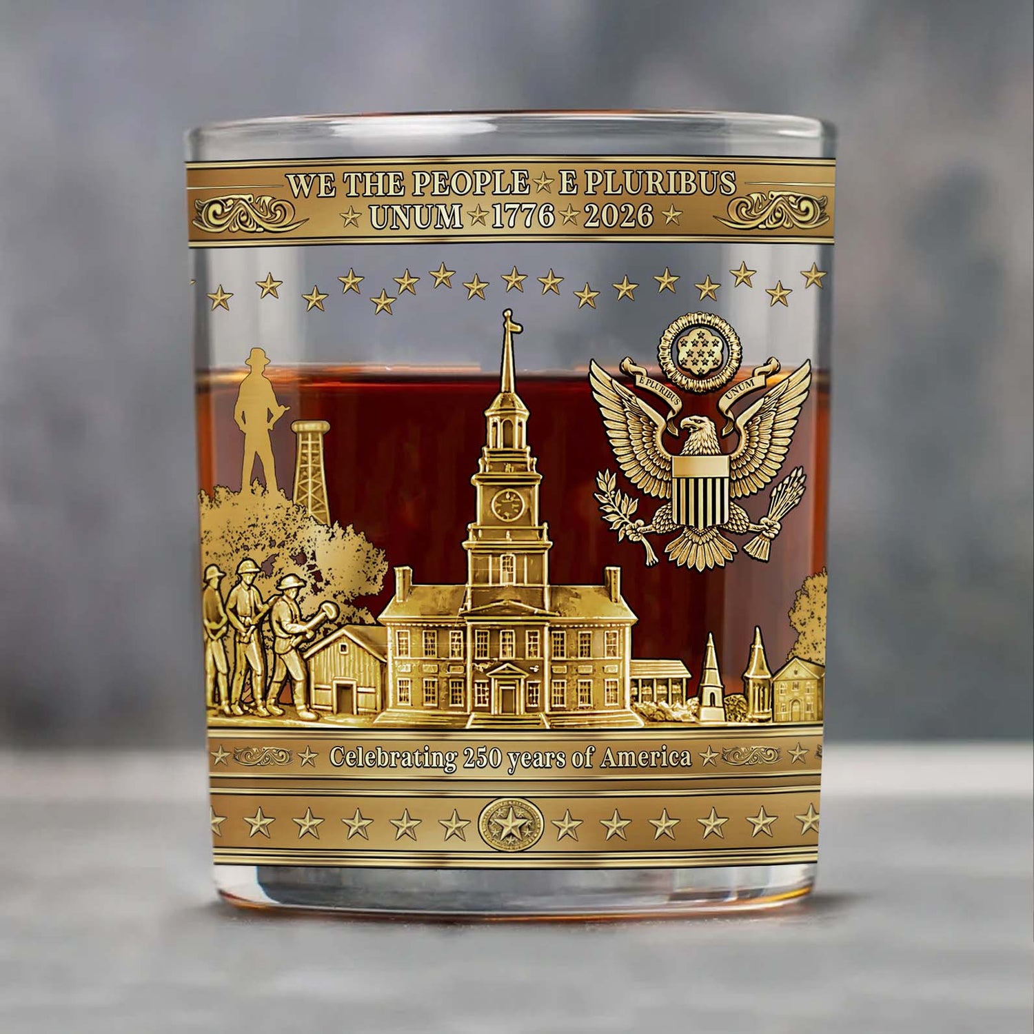 250 Years Anniversary Whiskey Glass, Happy 250th Birthday USA, Patriotic 1776–2026 Whiskey Glass