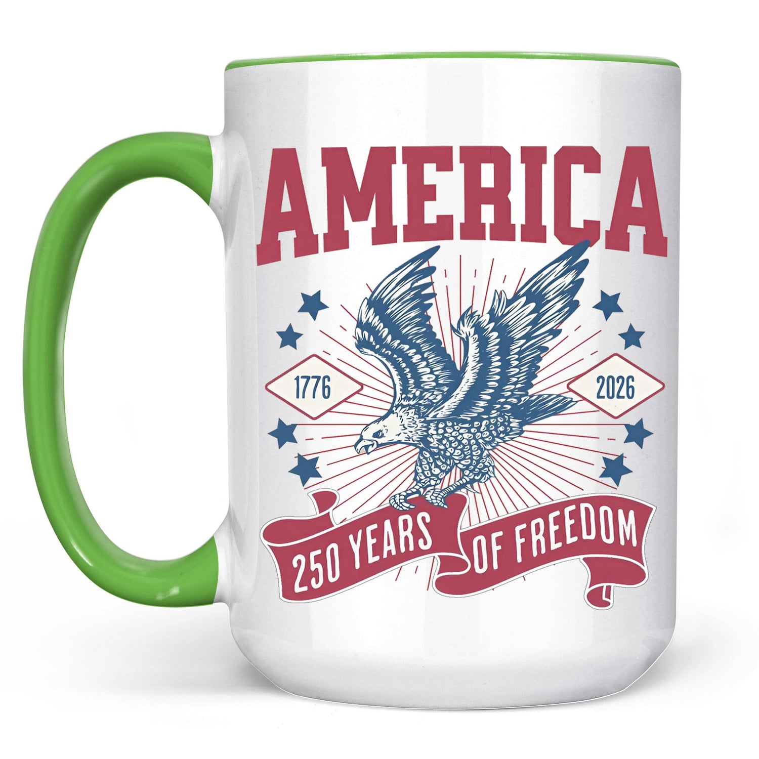 250 Years Of Freedom Mug, Happy 250th Birthday USA, America 250th Anniversary, Patriotic Bald Eagle White Mug Accent Mug