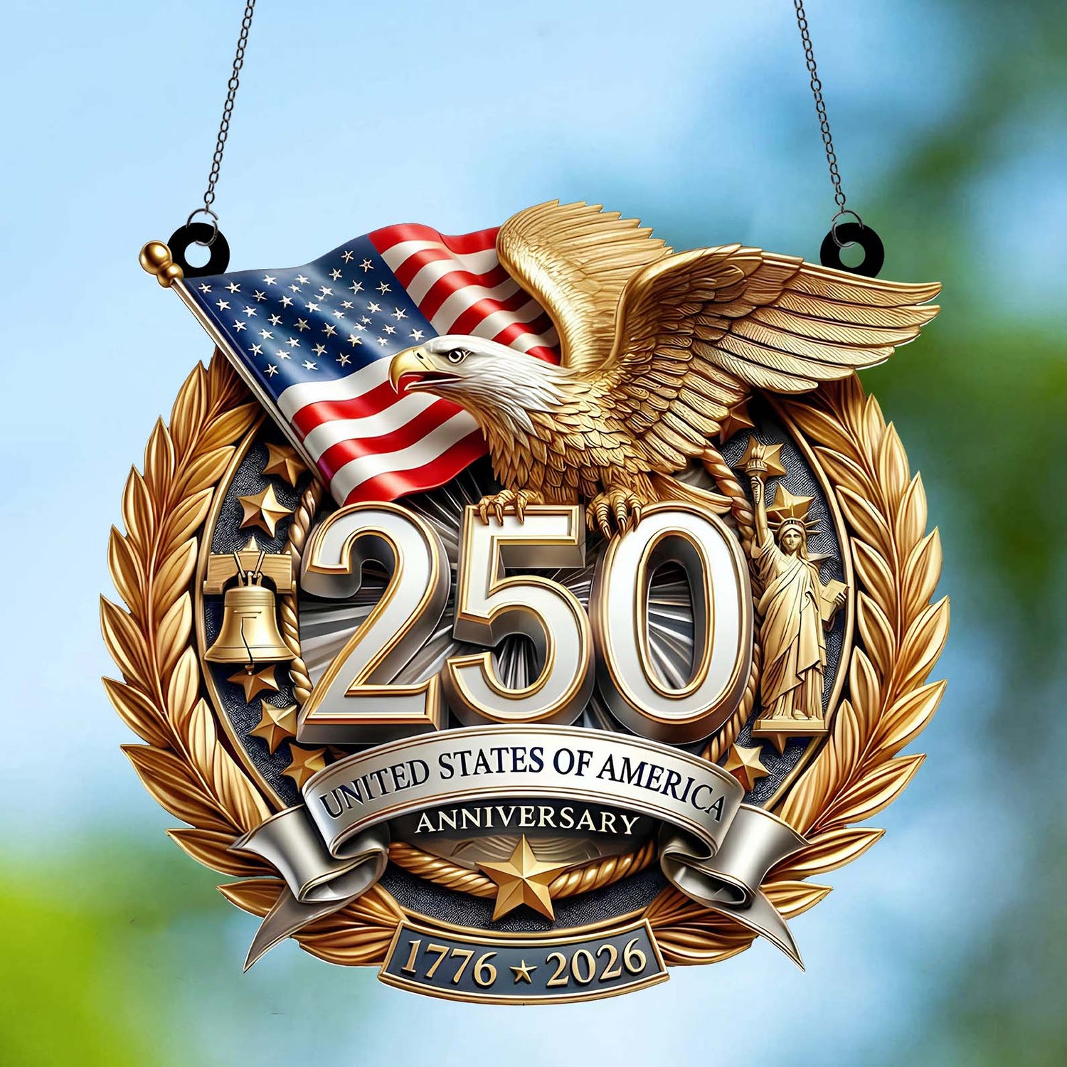 250 Years USA Anniversary Suncatcher Ornament | Patriotic Eagle US Flag 1776–2026 Suncatcher 684246