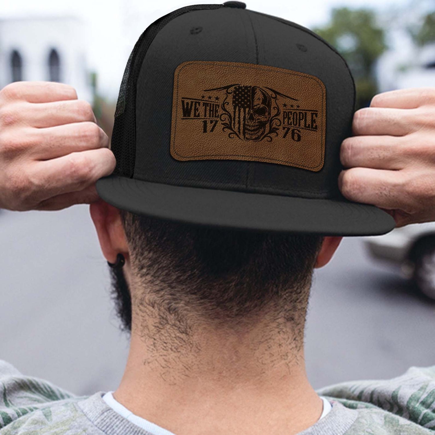 250 Years We the People Patriotic Leather Patch Trucker Hat, America 1776 USA Flag Skull Cap