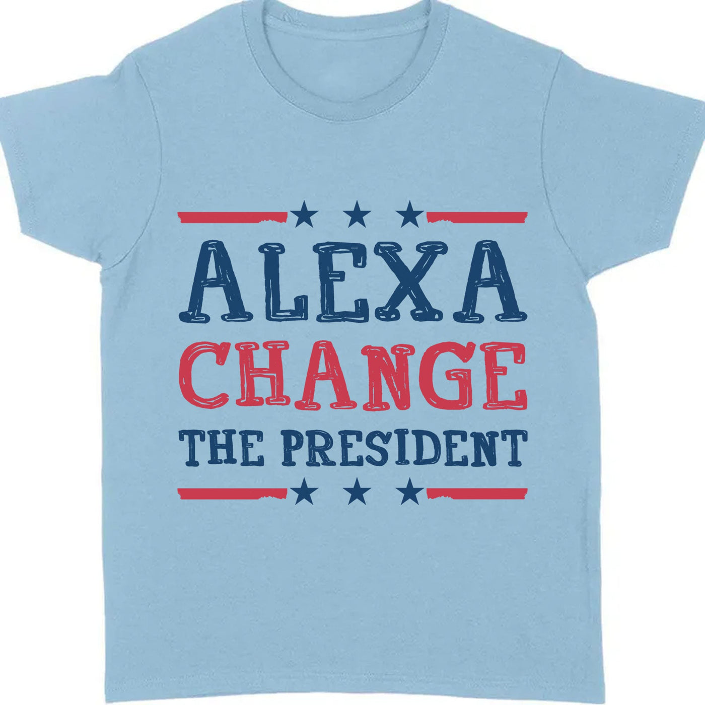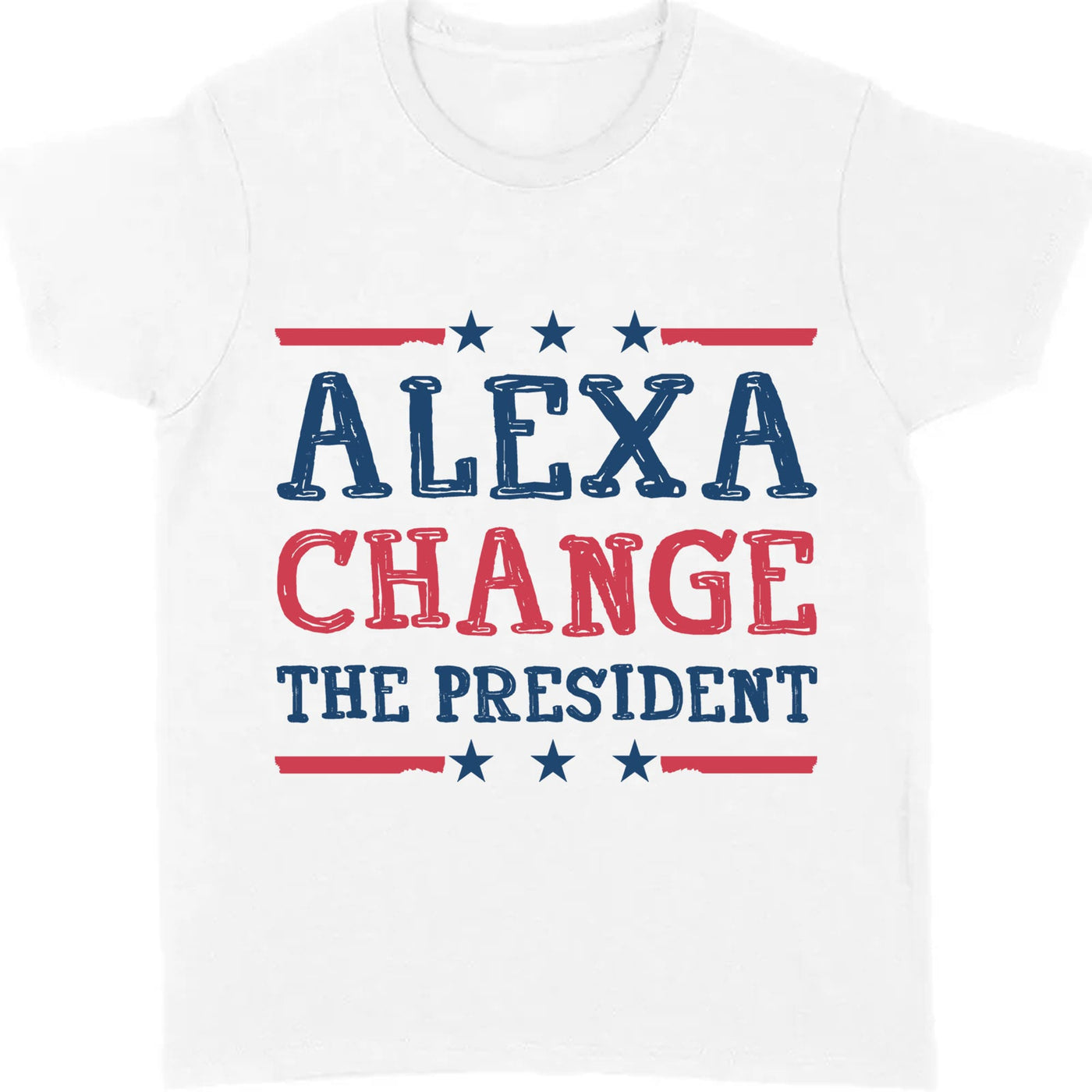 Make a statement with this politically charged tee featuring the cheeky slogan, “Alexa, Change the President.” Crafted from ultra-soft, high-quality cotton, this shirt offers both comfort and a touch of humor. Its classic fit and bold text make it an eye-catching conversation starter, perfect for sparking discussions at rallies, casual meetups, or even just while running errands. Available in a range of sizes and colors, this shirt is a playful nod to our tech-savvy times and a clever way to express your political views with a grin.