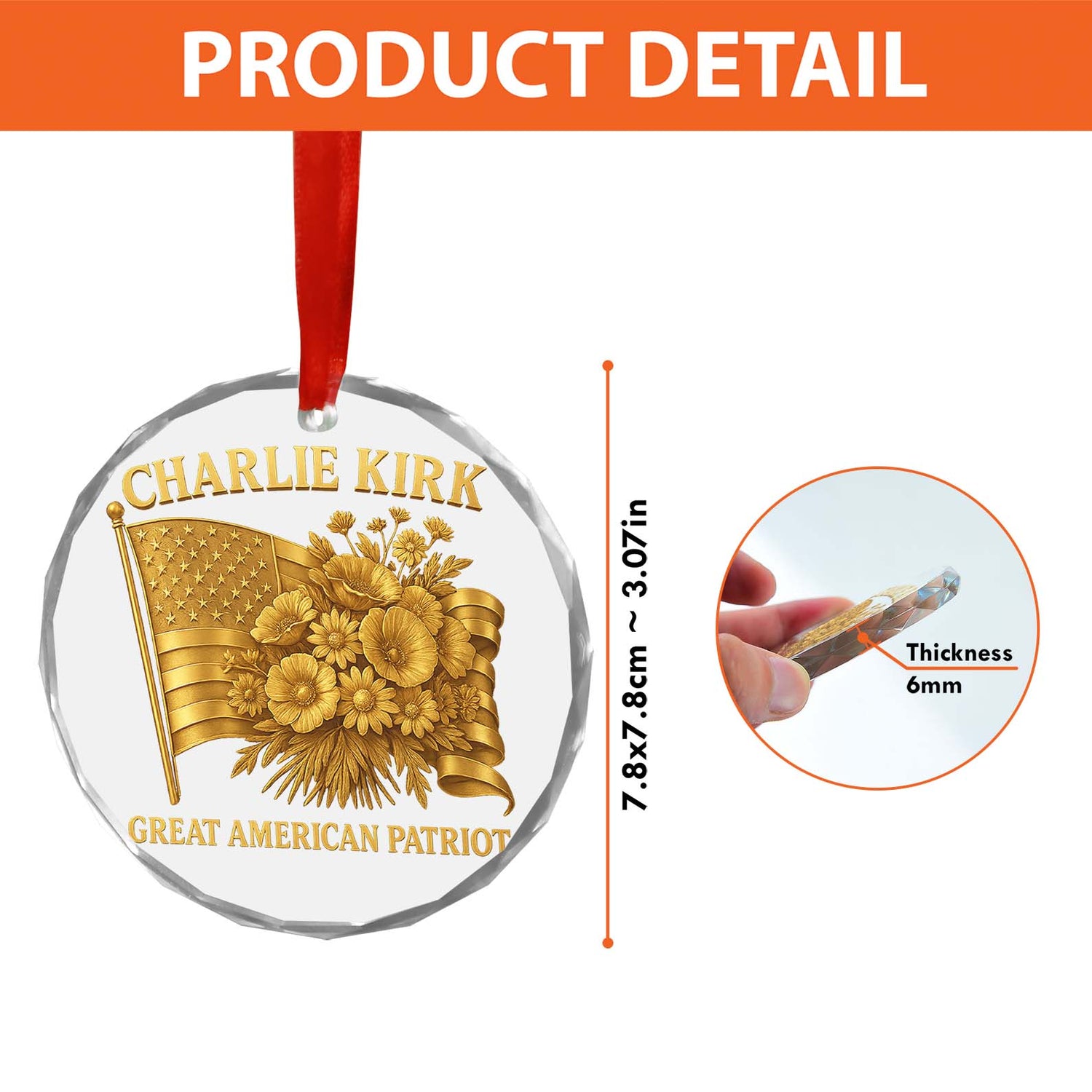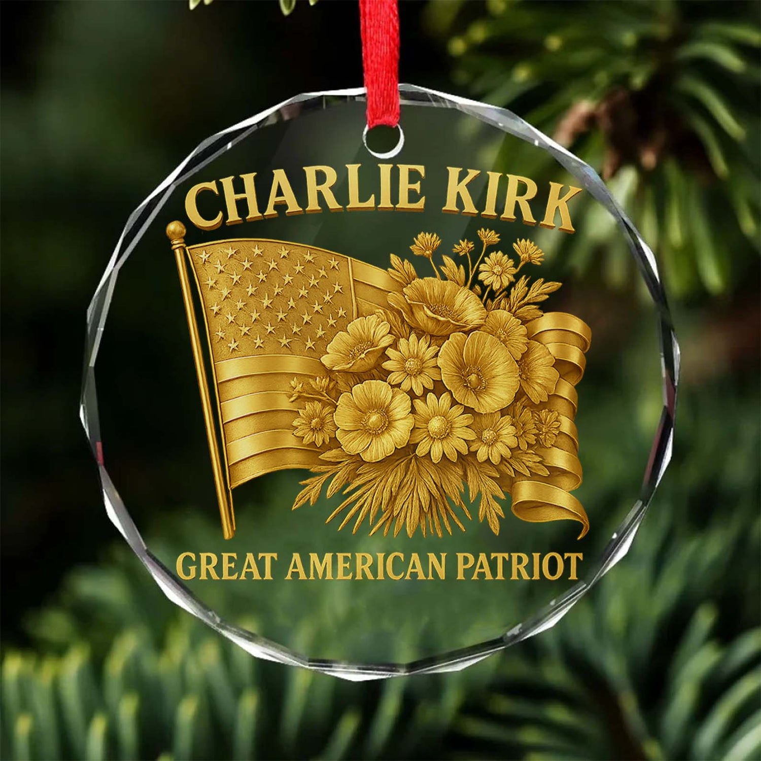 Charlie Kirk Great American Patriot Glass Ornament | Charlie Kirk Ornament | Justice For Charlie Kirk Ornament 683417